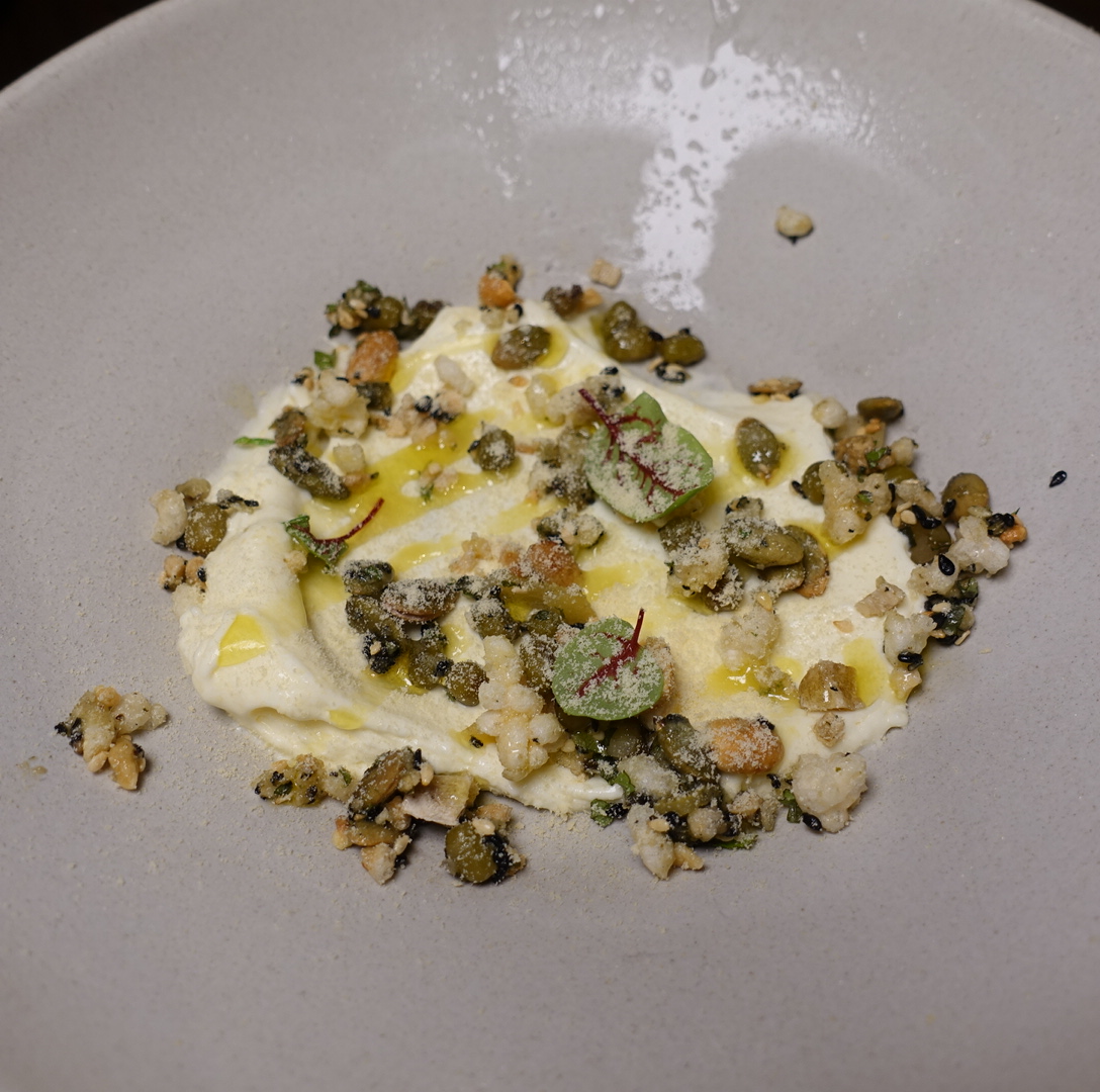 舉個例: 有一道 桂花,青豆,海鮮。上面是海膽,吃起來全都是青豆的味道,再來是下面蟹肉跟青豆互相搶戲,海膽呢??