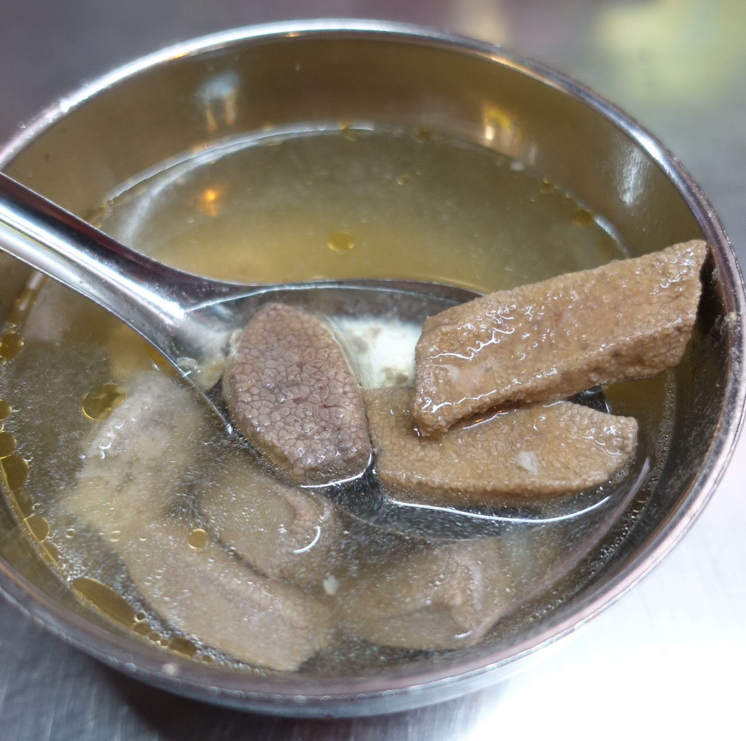 豬肝切法跟別人不同,是比較像切塊的方式,所以咬起來的口感特別好。