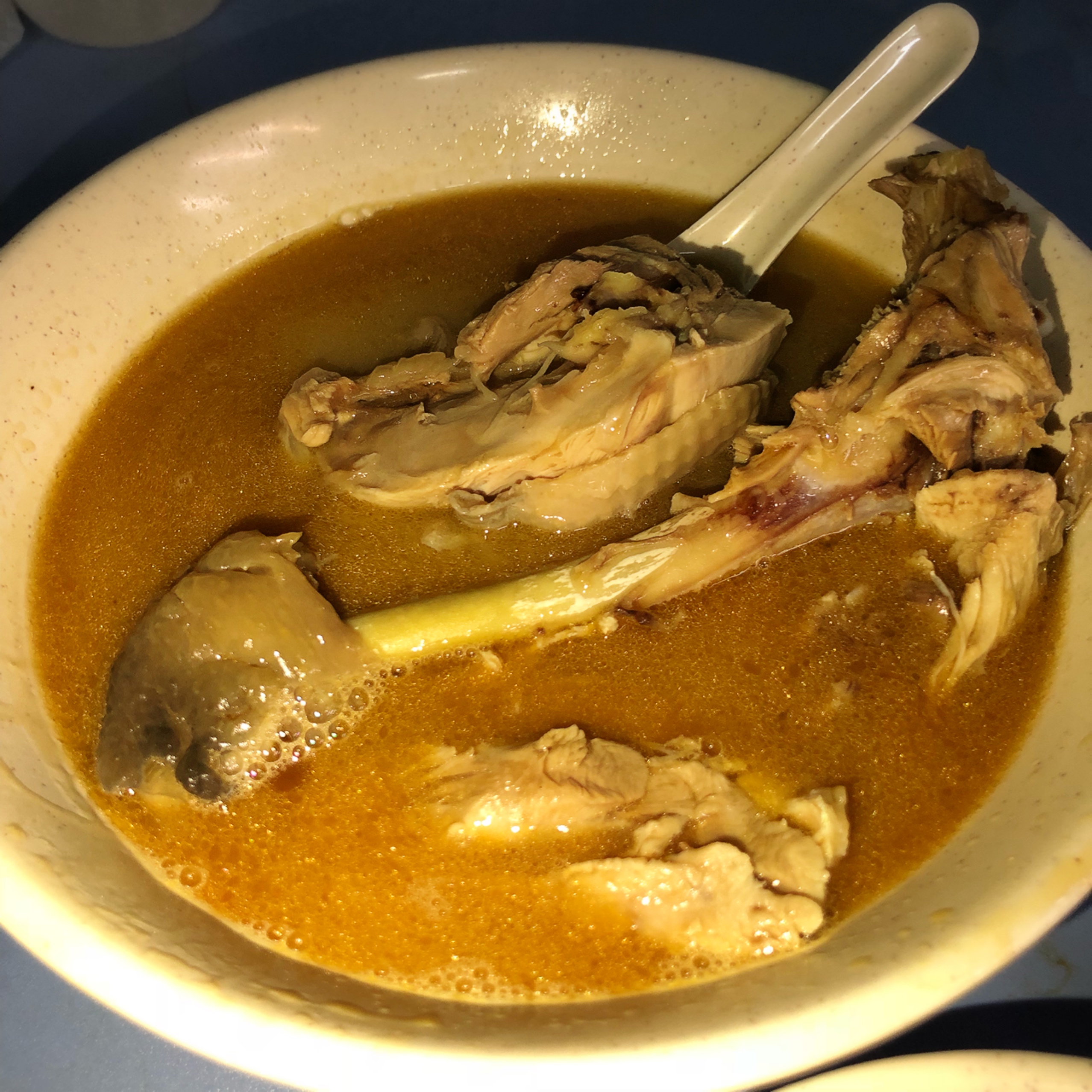 看到一大支雞腿骨擺在碗裡,視覺滿震撼的