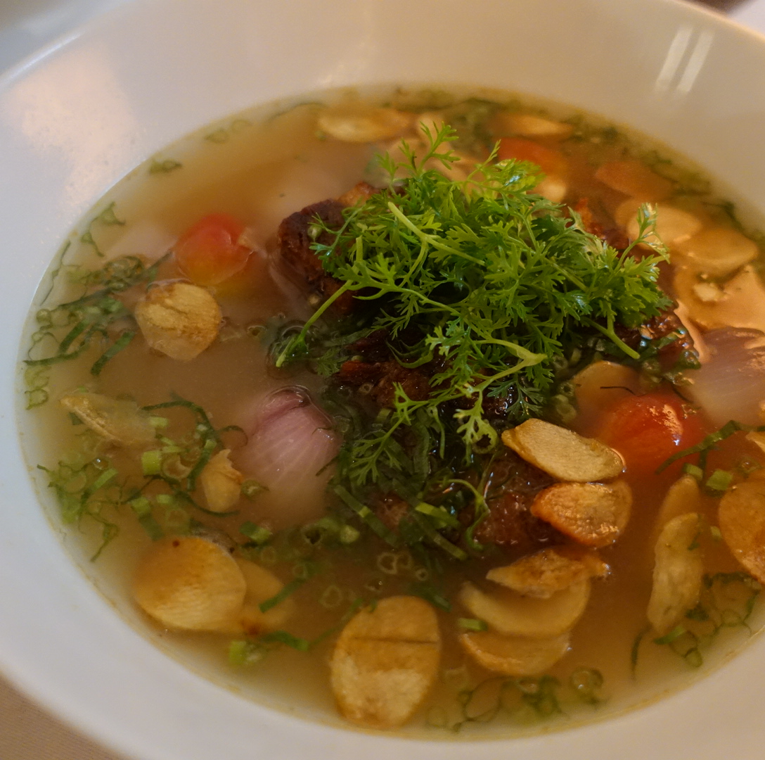 豬腳湯也是一絕,湯頭微酸,有一點辣,再加上一點點咖哩味,真的超絕美,台灣不可能吃到這種做法。