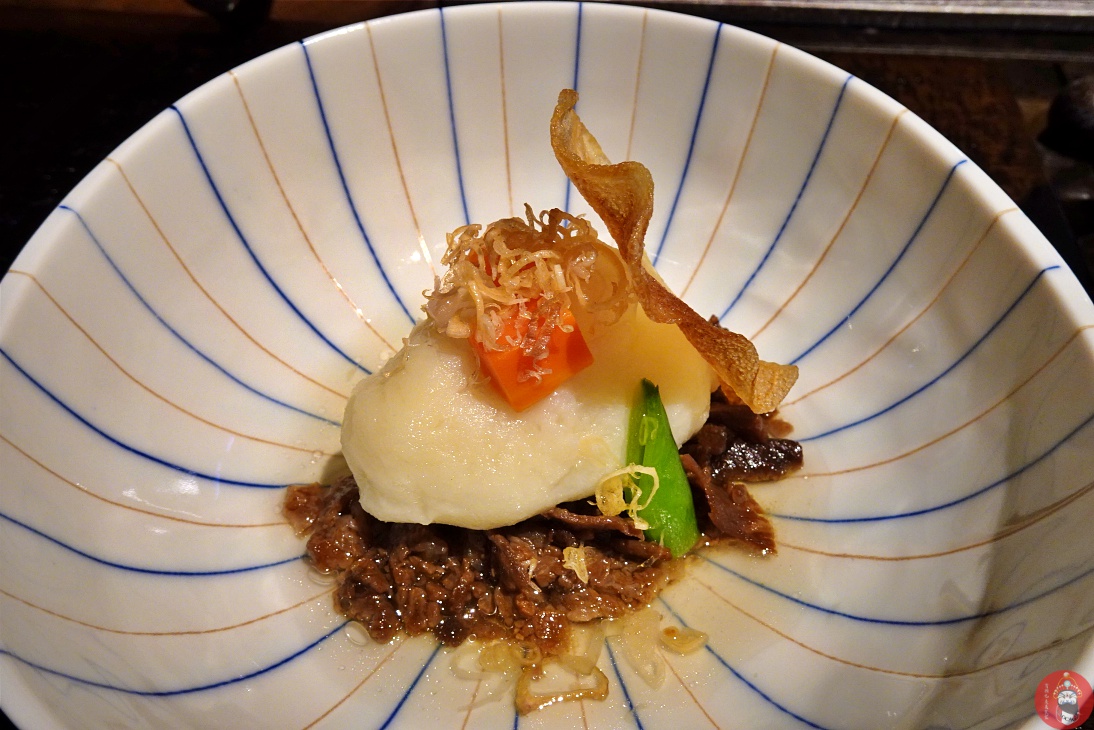 御造 和牛生牛肉三種盛和 搭配帝王蟹肉及起司 由於切太碎吃不太吃是不是冷凍的 不過搭配起來是好吃的