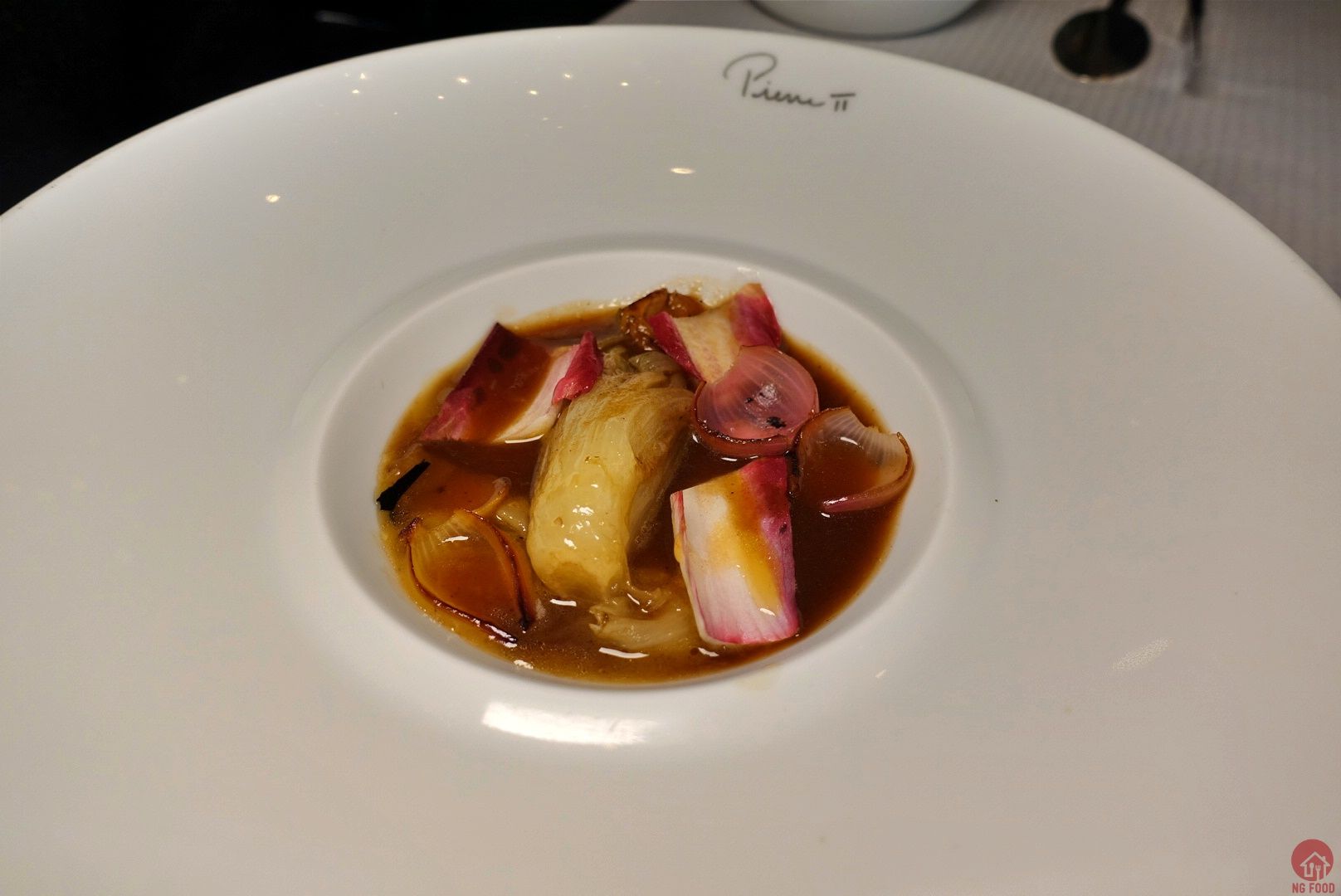 燉煮苦白菜、洋蔥清湯。醬汁好迷人。