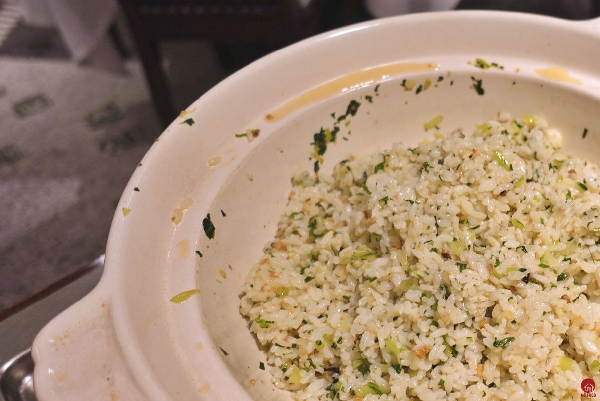 新火胴上海菜飯 1280元 這道整個桌邊服務,在桌邊現炒,最後酒點火淋在鍋上,可是火熖實在太小