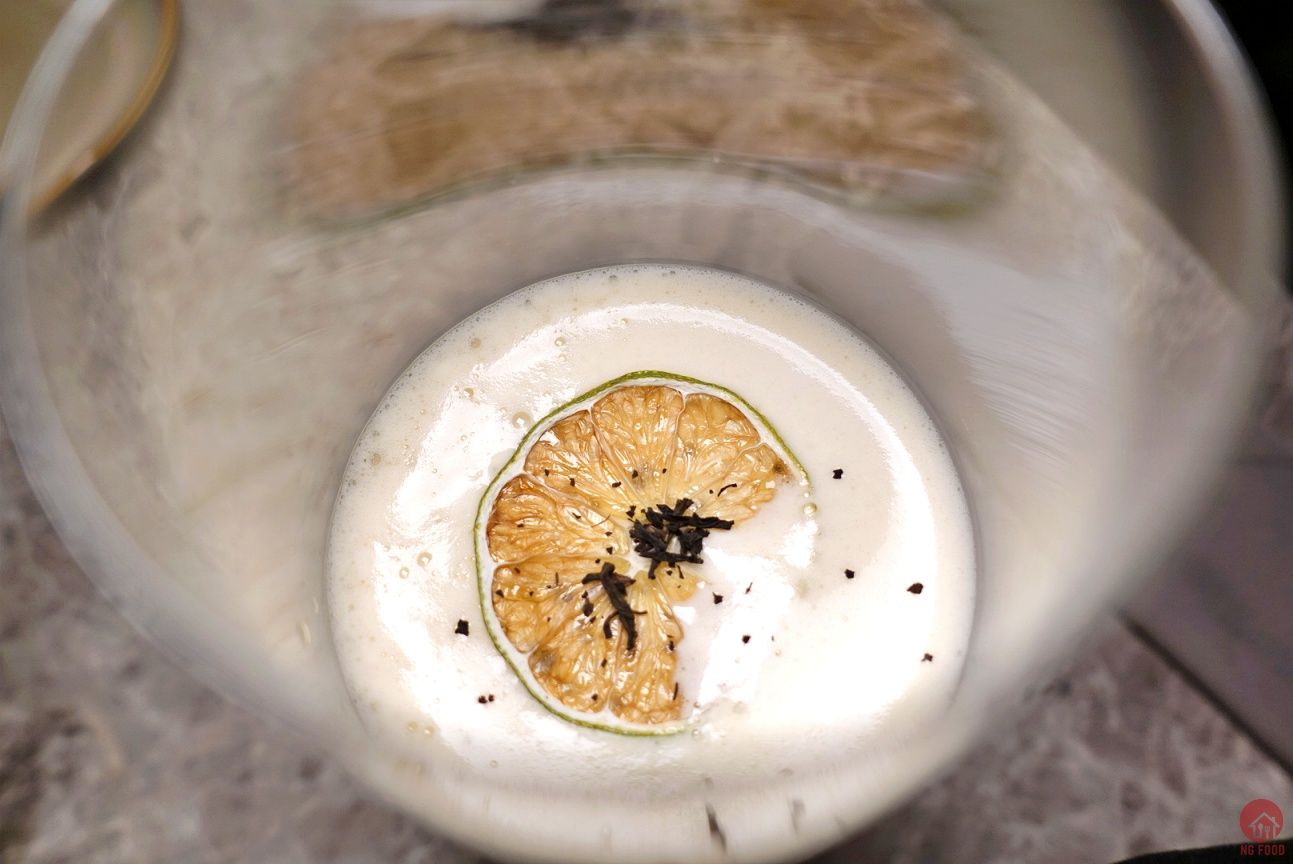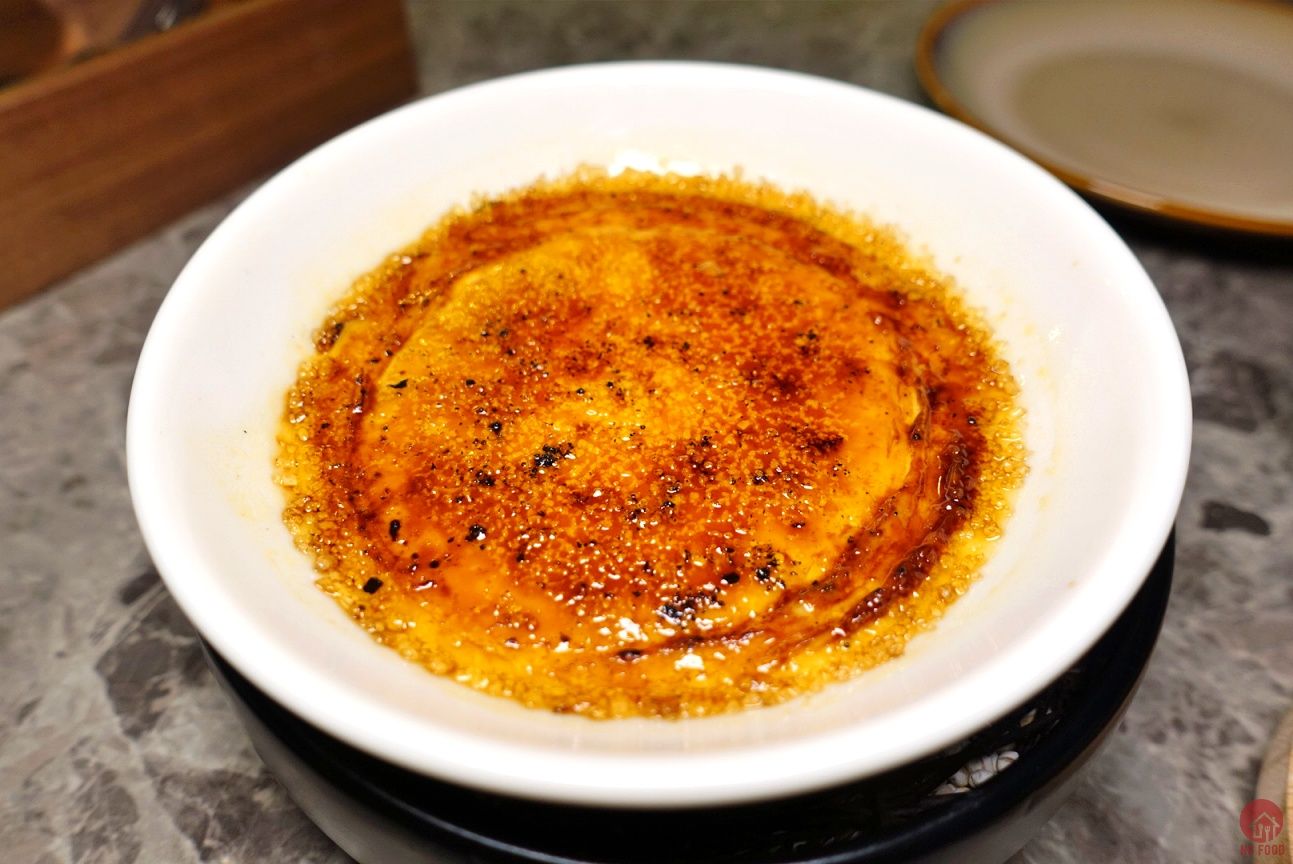 鑄鐵燒烤雞蛋布雷 280元。好久沒吃到這麼好吃的布雷了,覺得好吃但是又說不上來,他們是用炭去加熱鑄鐵,再用鑄鐵去燒上面的糖,所以氣味有所不同,很推