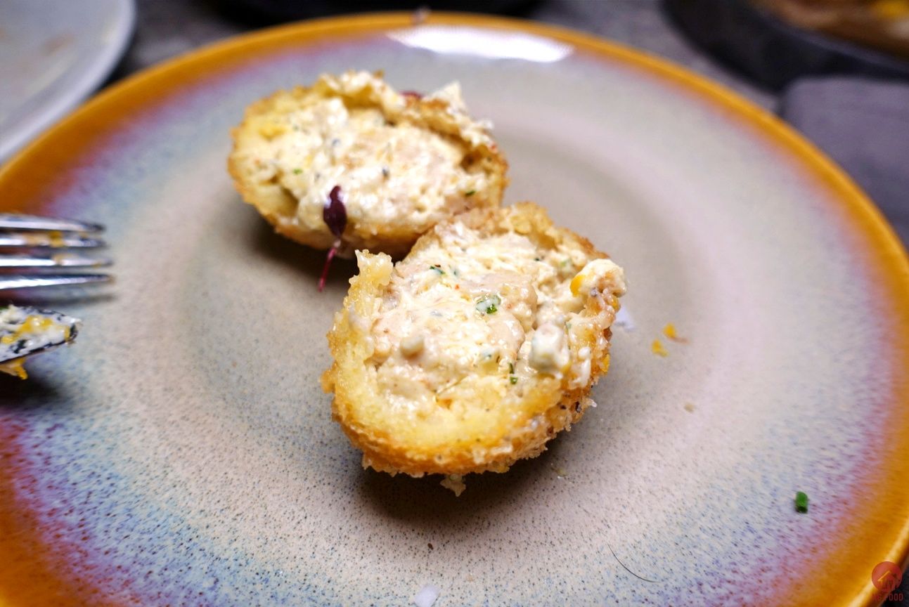 酥炸雞肉球/鹽漬蛋黃與鹽麴 180元 這道也好吃,但是一顆有點多,吃多了有點膩