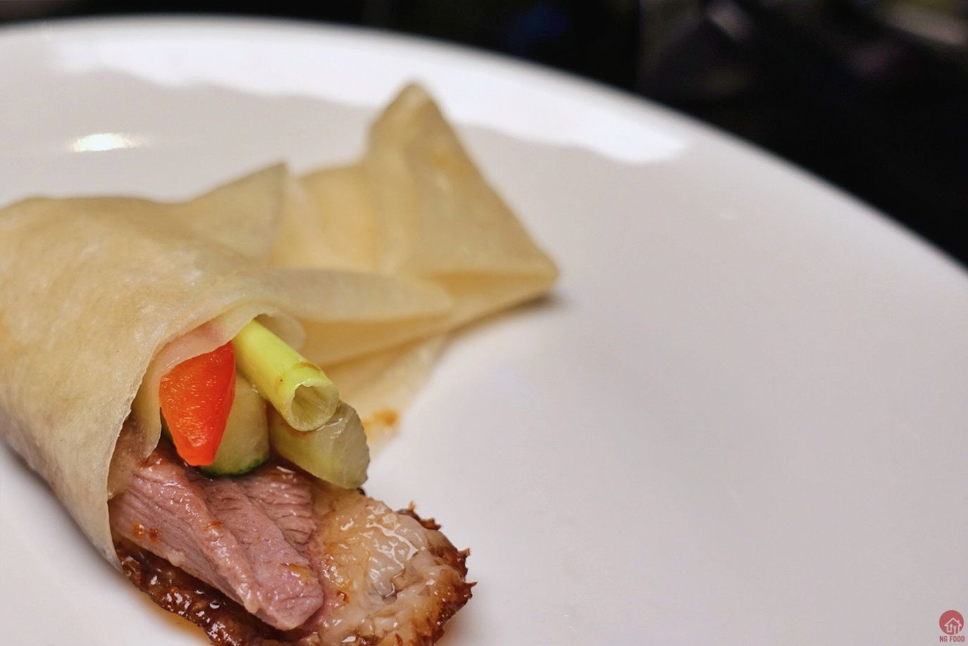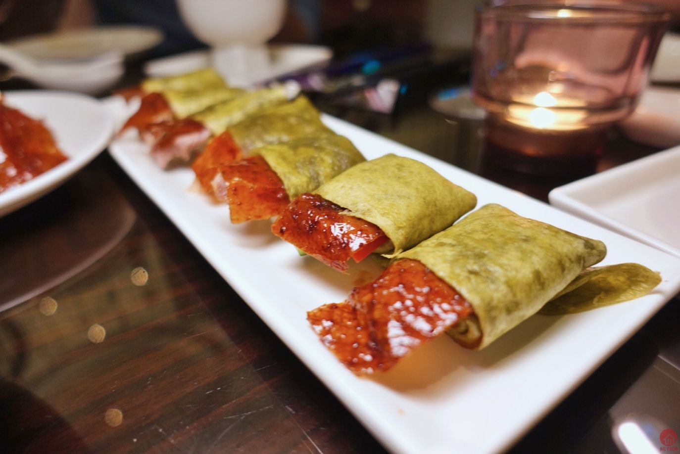 再來烤鴨的部分,紫豔算是比較創新的吃法。