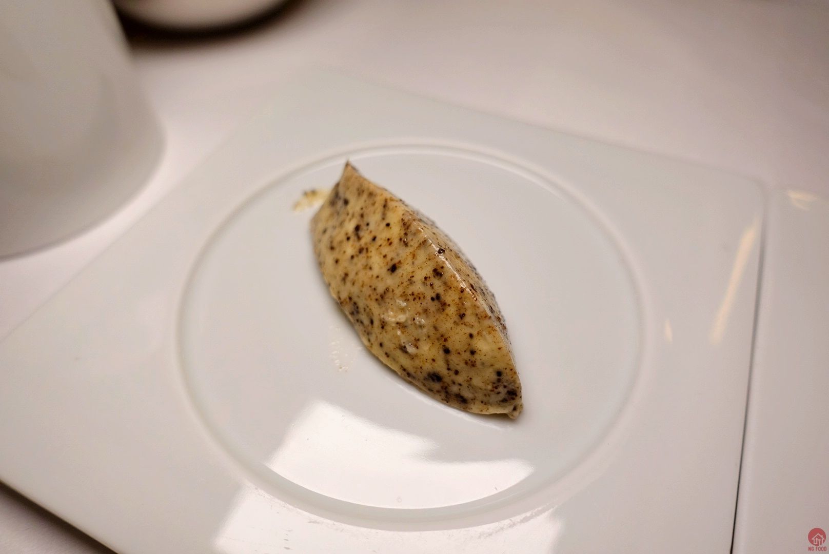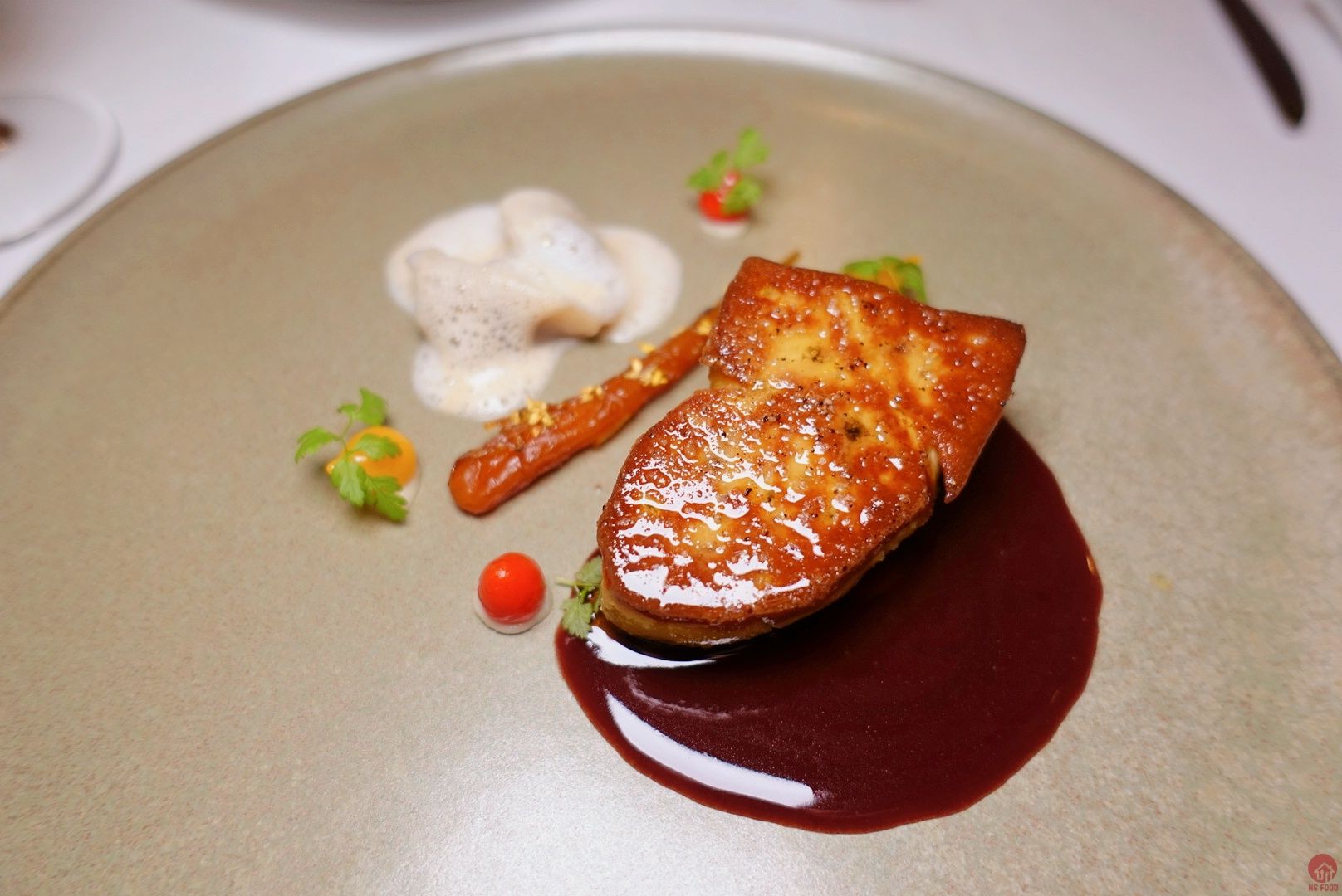 香煎鴨肝∕無花果泥∕波特酒醬汁∕鴨肝餛飩 1250元 醬汁很正點 鴨肝餛飩 也很讚