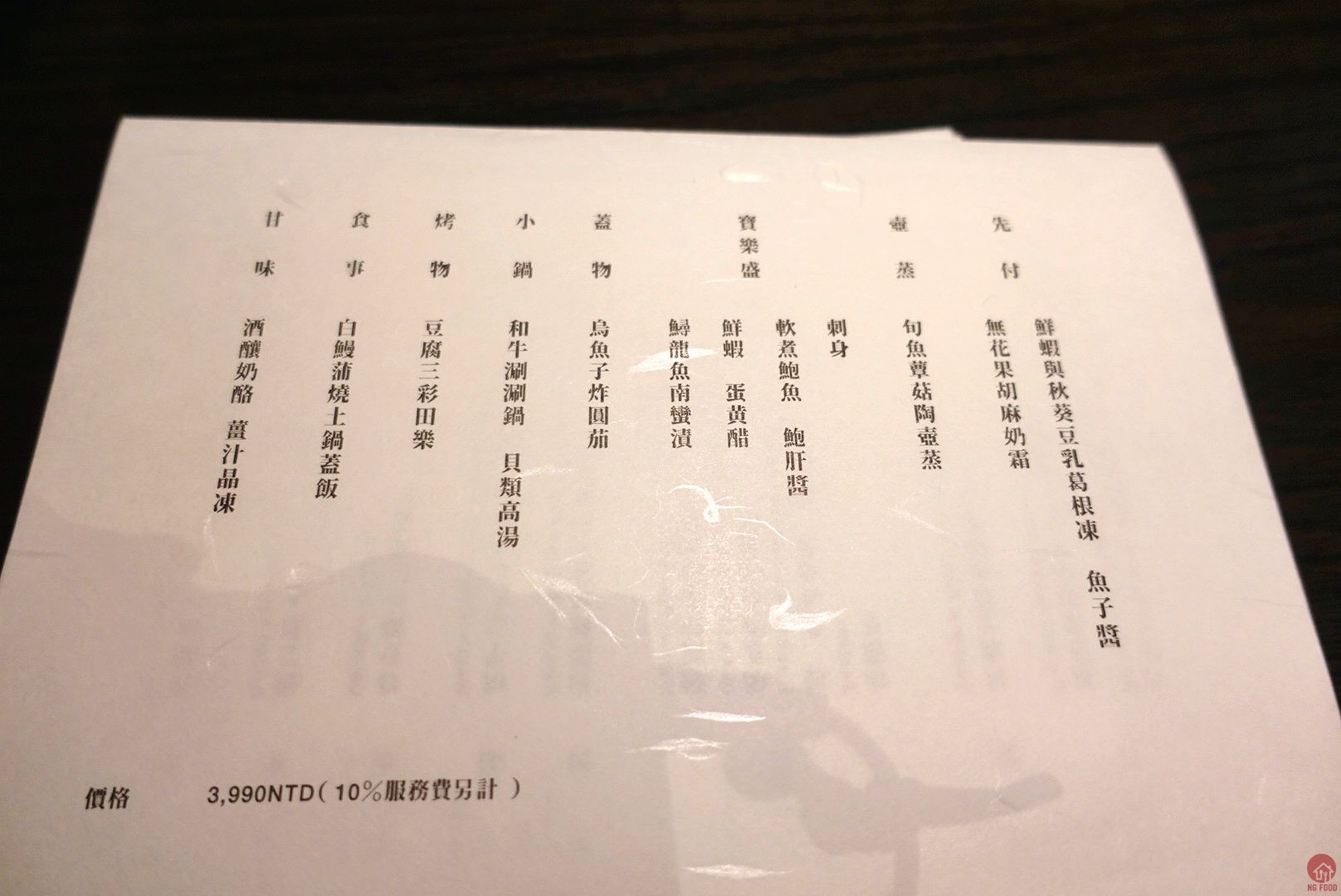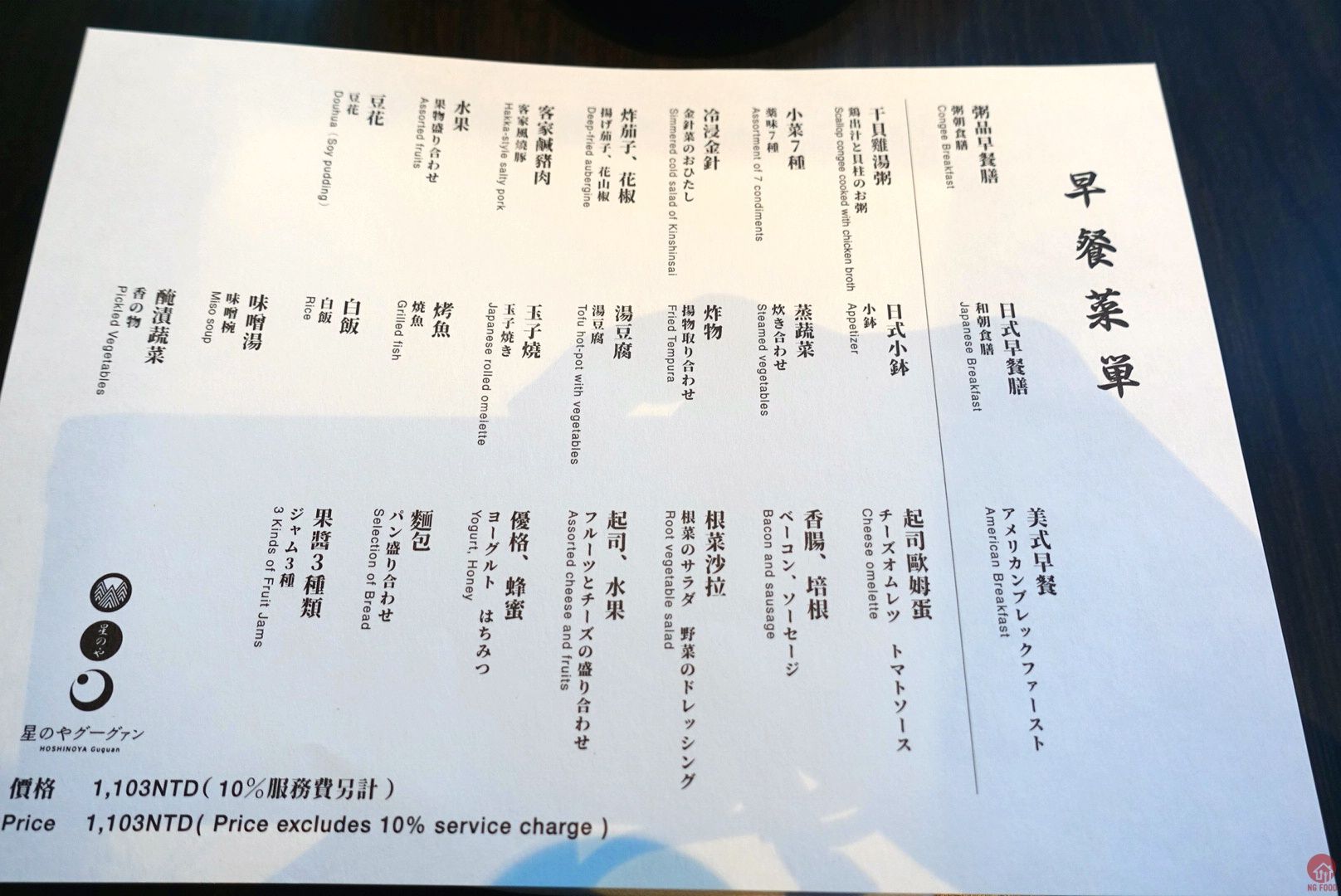 晚餐一人 3990加一成,早餐1103加一成