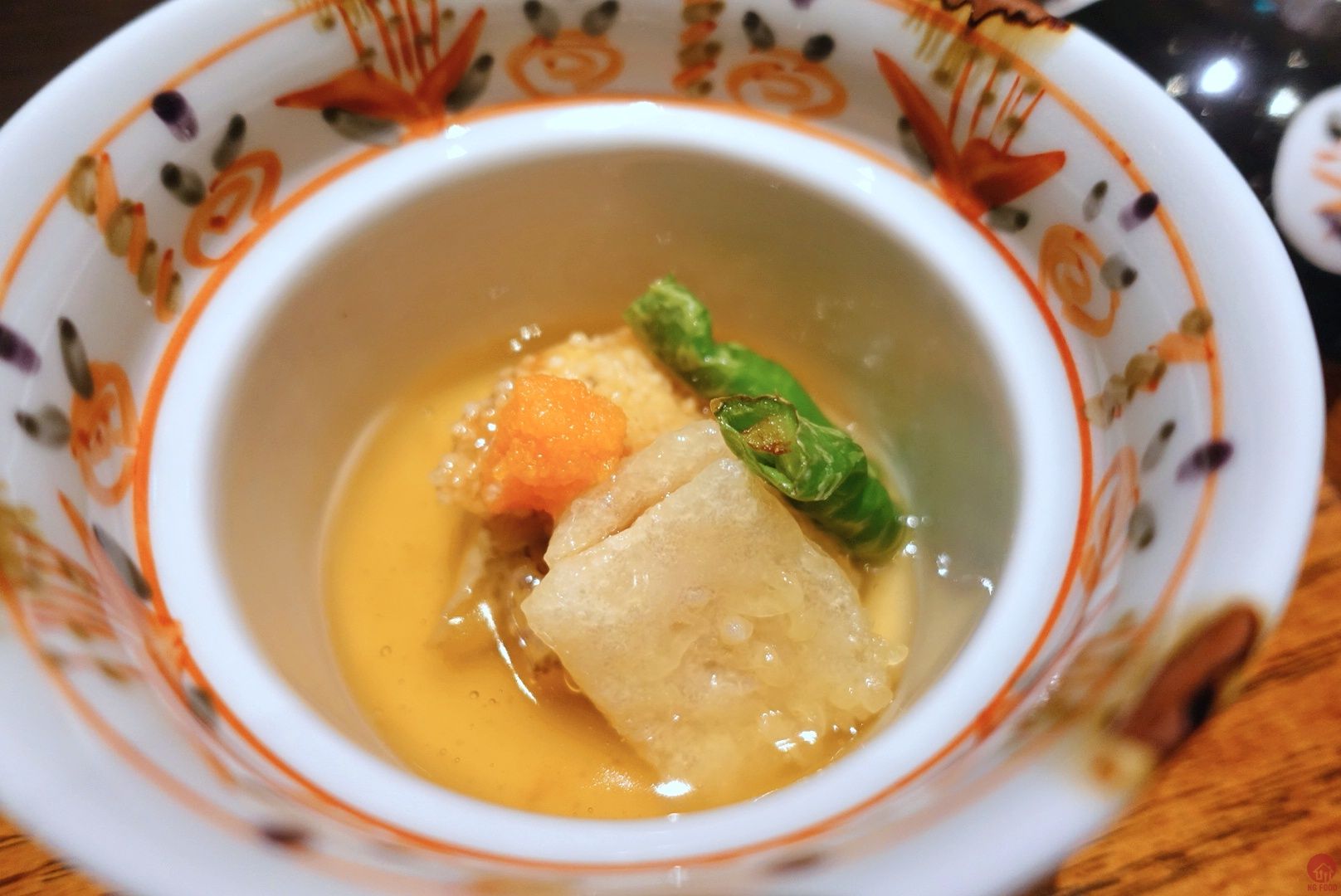 先付 鮮蝦與秋葵豆乳葛根凍 魚子醬 蠻好吃的 蝦很甜