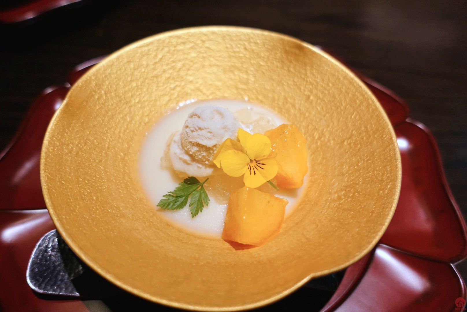 酒釀奶酪 薑汁晶凍 好吃的甜點,上面水果是杮子