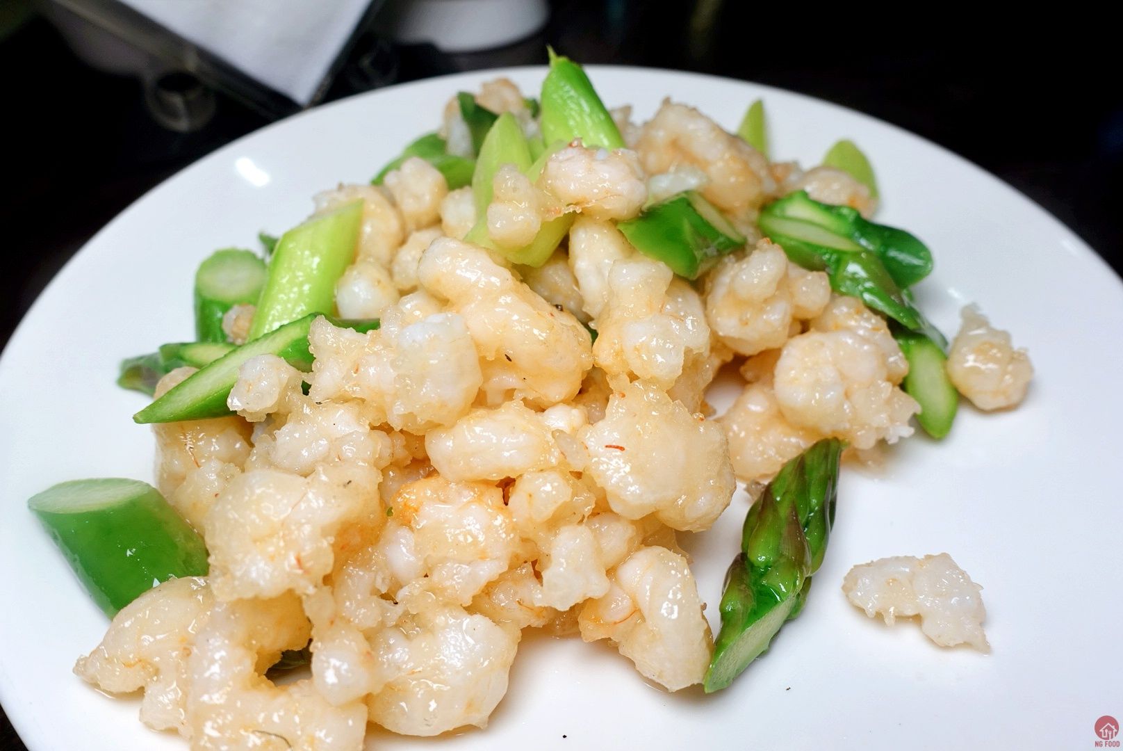 蘆筍蝦仁/asparagus Shrimp with Zhenjiang vinegar 4/5 一定要加鎮江醋,好吃,蝦子有點脆又不會太脆,口感很好