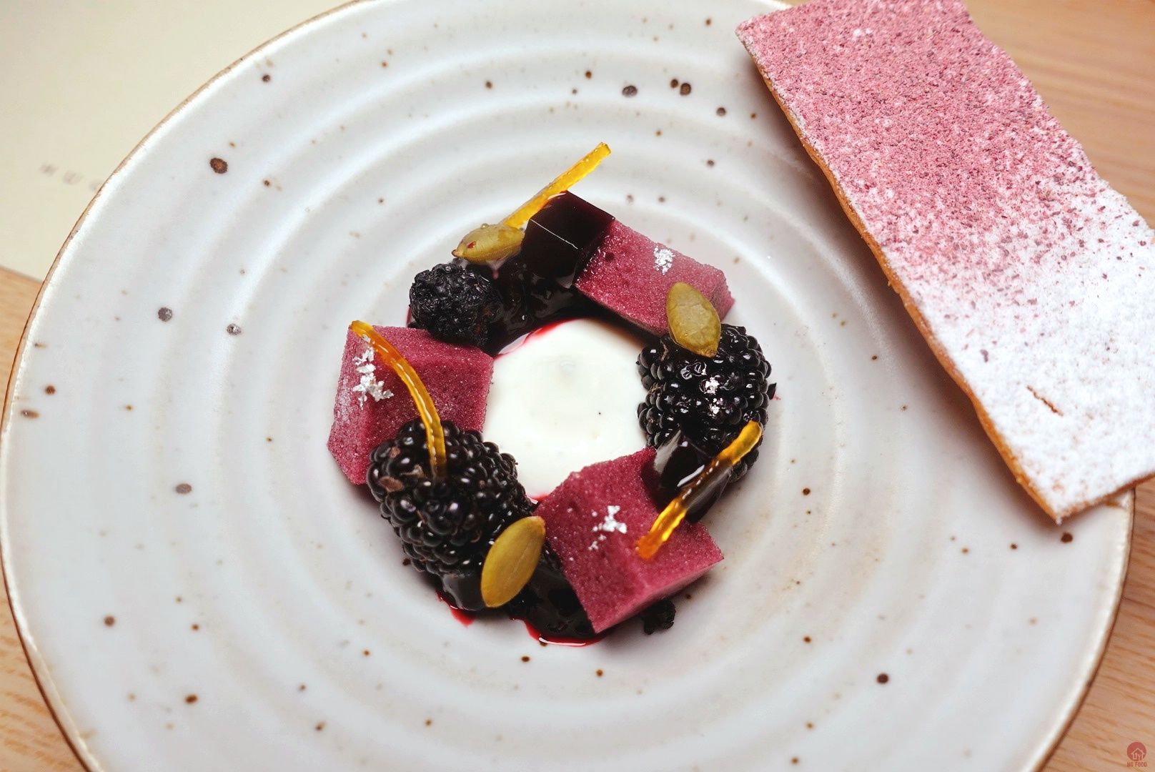 桑椹果醬/桑椹醋冰糕/香草酸奶 5/5 主要是以酸為主的一道,很開胃,旁邊那片是酥餅,灑洛神粉,真的很開胃