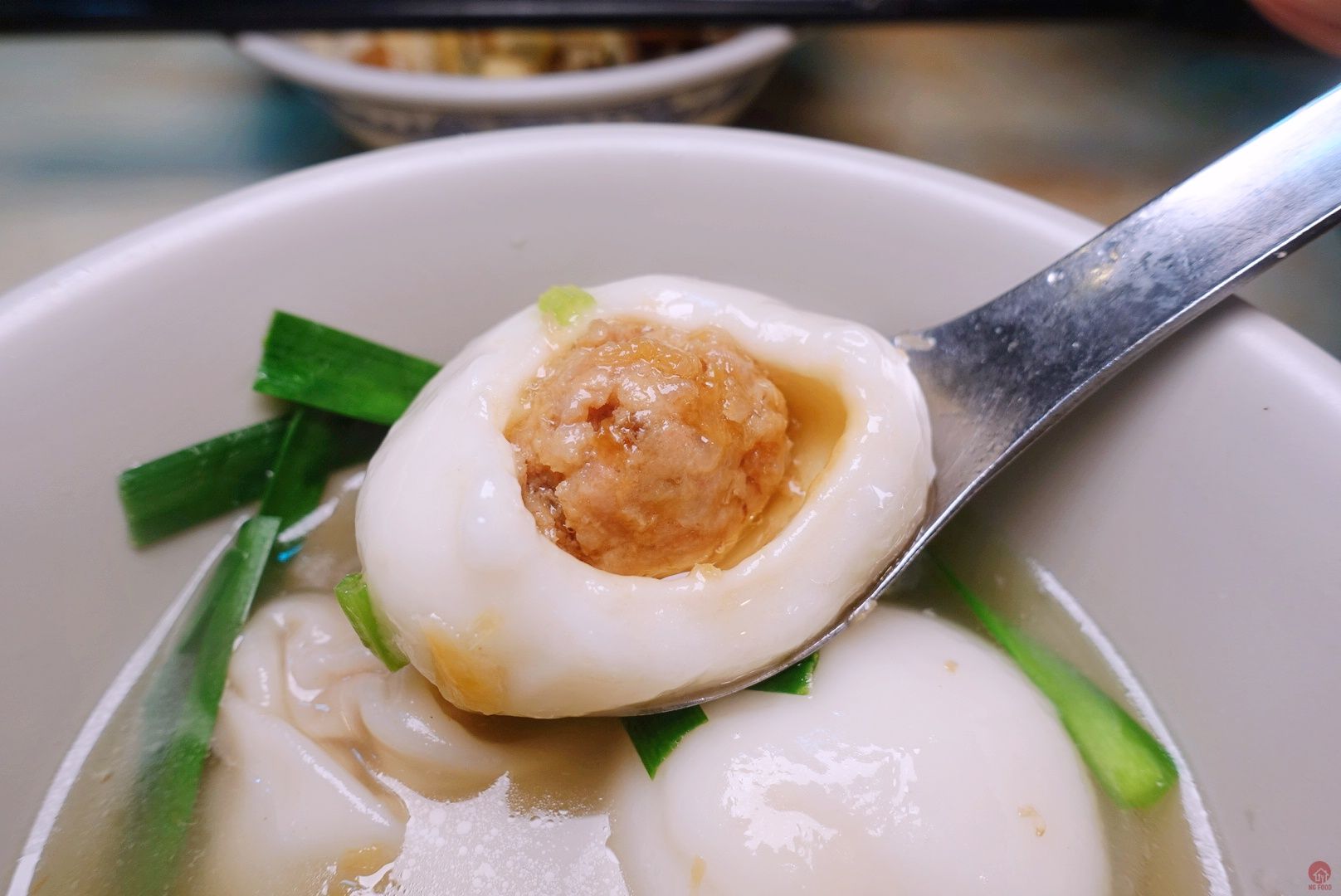 Meat inside wonton and big rice ball is the same. It’s made by Hakka salty pork.