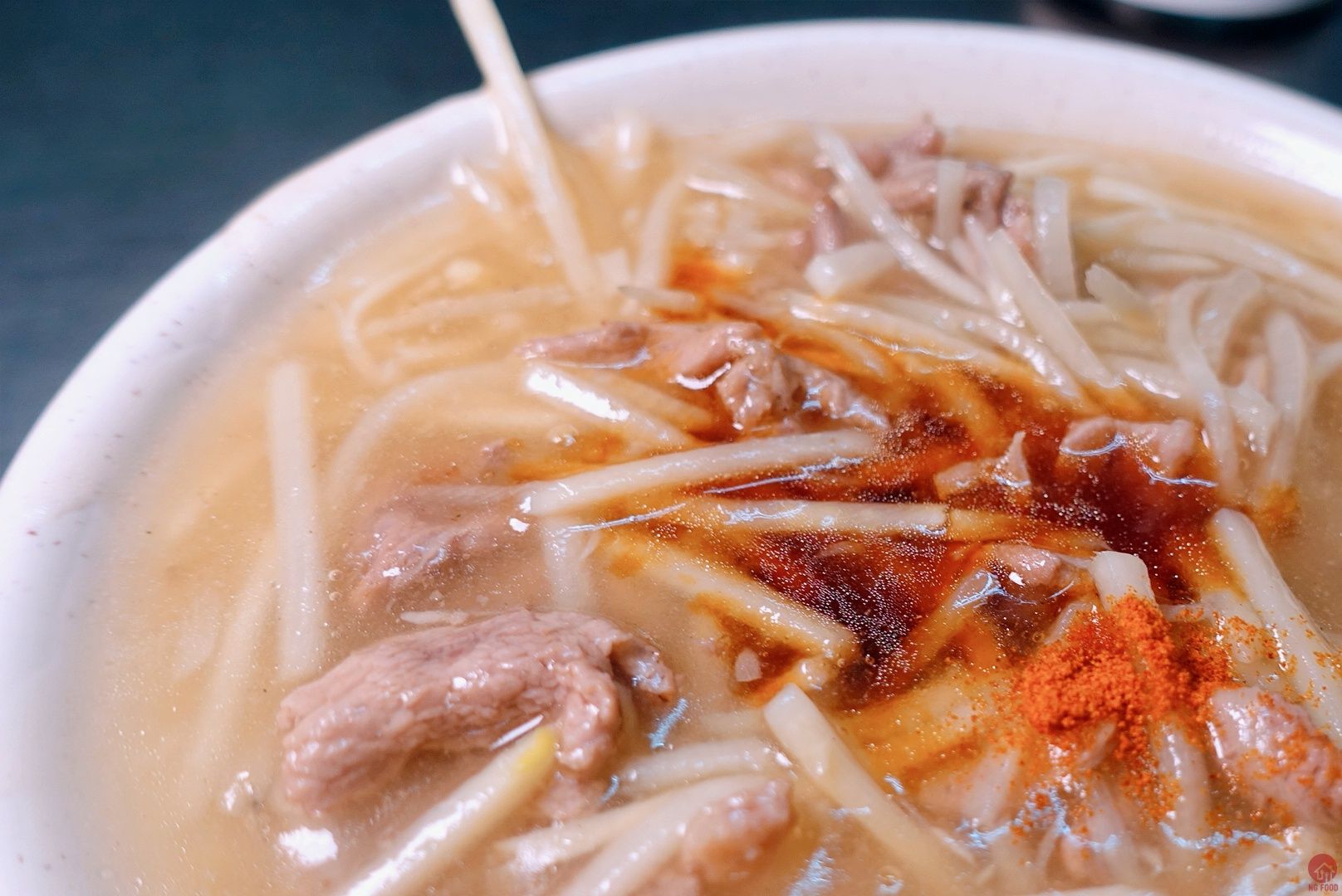 Thick soup with Sliced bamboo is a little sweet, don’t forget add vinegar and chili powder.