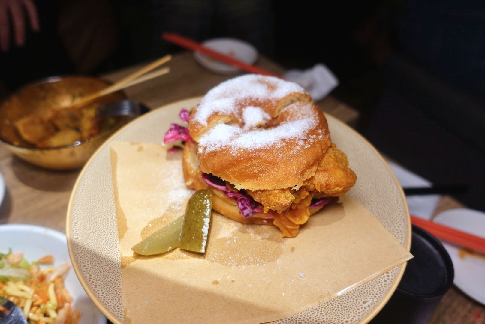 說是炸雞,其實主要是跟酒吧聯名,炸雞好吃,尤其是醬料跟本靈魂很夠味,應該是要配酒,口味重。均分: 3.5/5