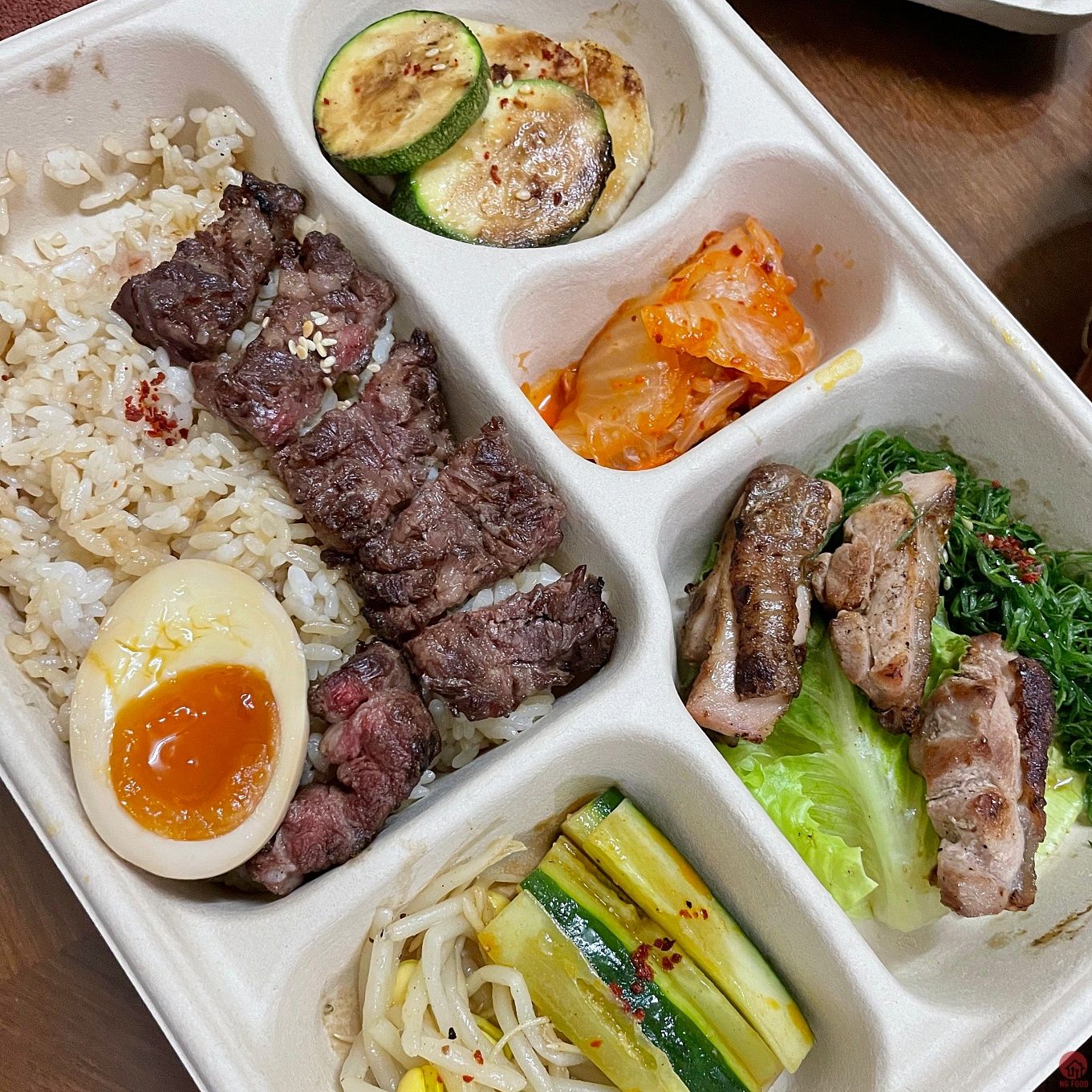 誠意很足,肉溫溫的也好吃,飯是和牛油拌飯,整個吃光,配上芥末漬,超讚!