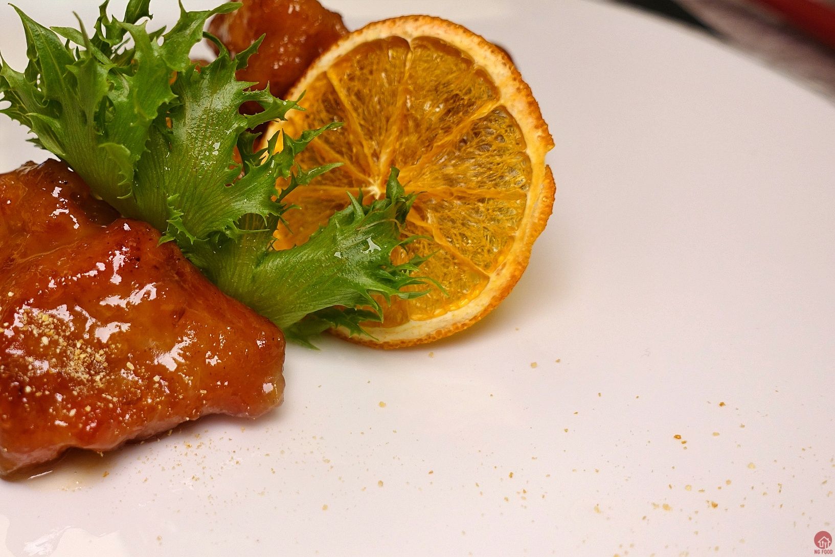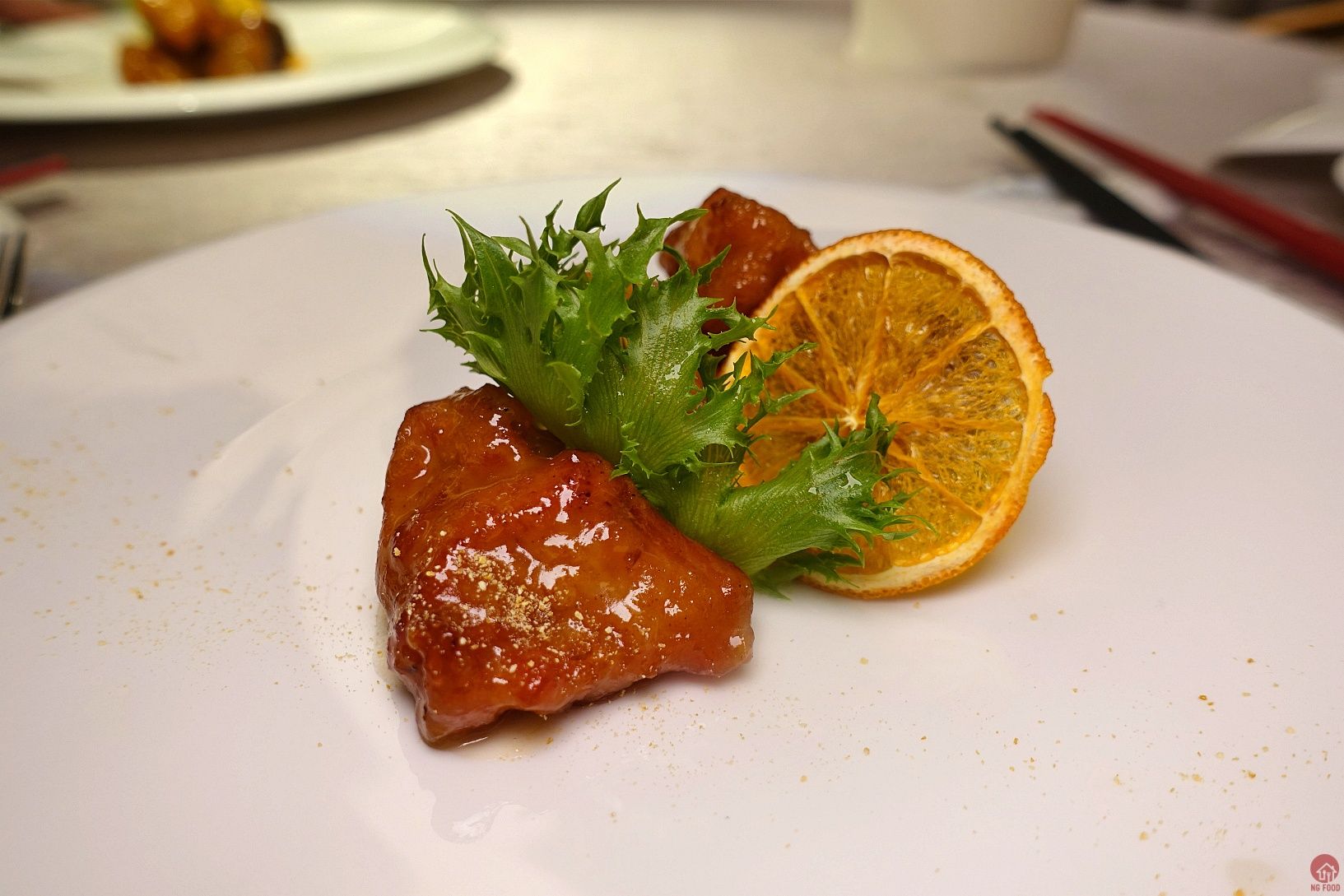 柚汁排骨 4/5 這個排骨也好吃,除了用柚子醬汁,還可以沾柚子鹽,再搭一點剝散的柚子肉。很好吃,柚子醬汁也不會太酸,也不會太甜,調得剛好