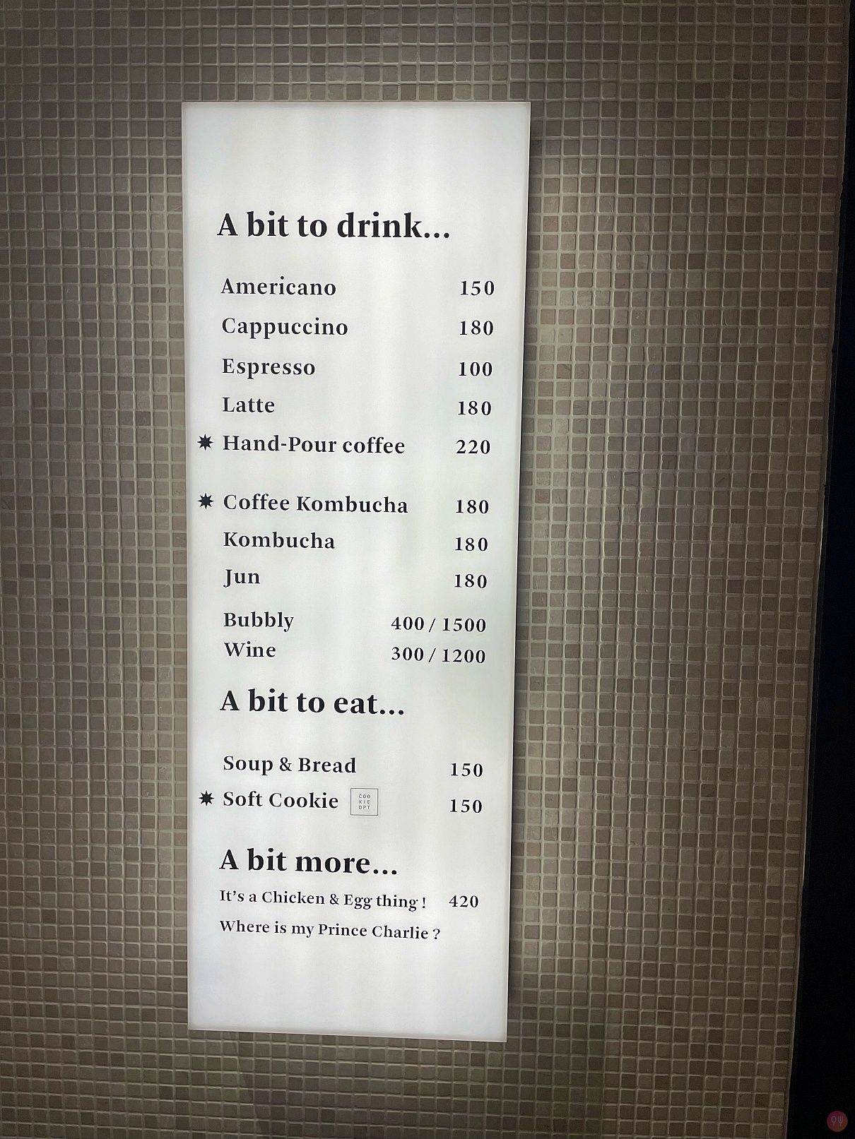菜單也很簡單,就在牆上的燈箱,1F還有一個戶外區,感覺得出來一切從簡,但又有點文青