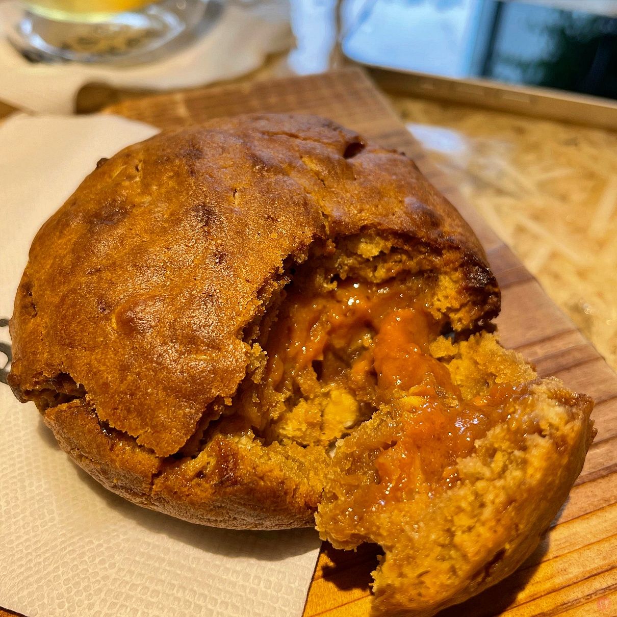 軟餅干是鹹蛋黃口味,有幫忙加熱,但是實在好大塊,有點吃不完,沒有比較沒有傷害,WM workshop的好太多了