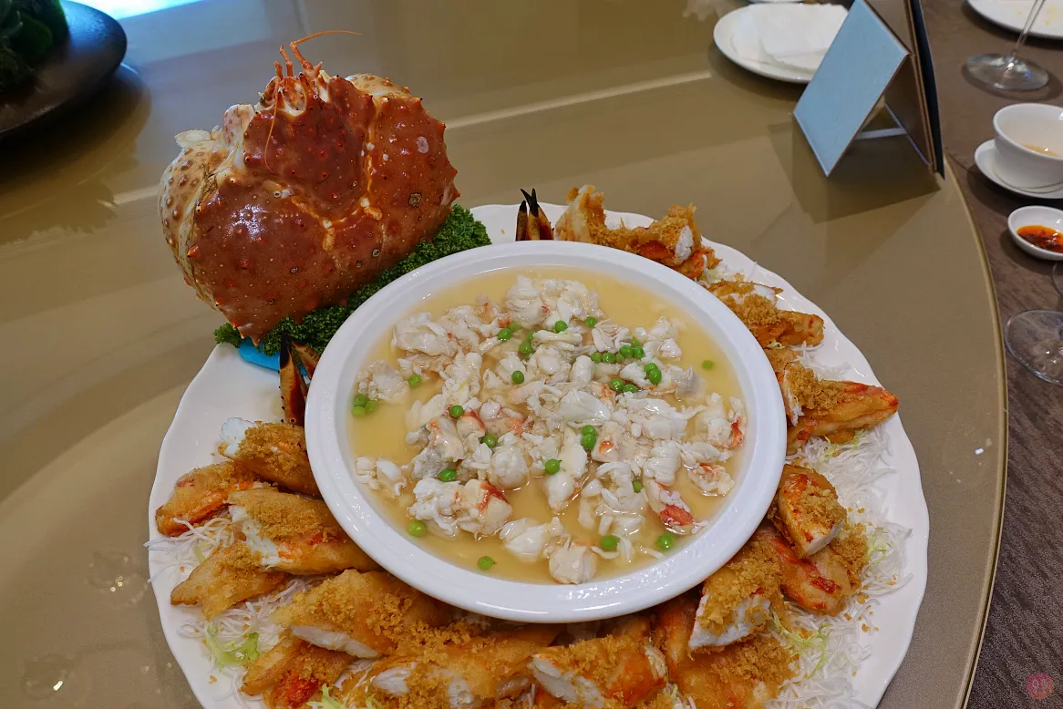 阿拉斯加蟹二吃 中間的蒸蛋白味道淡雅,卻又迷人,超好吃!