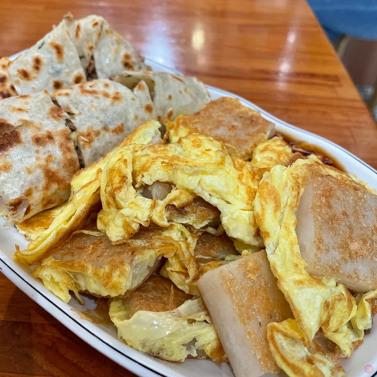 淋蛋,蘿蔔糕之前就吃過,火侯很好,外層一層薄薄的焦脆,加上切的厚度,口感很好,真的不錯吃,但是這一份真的太飽了XDDD 尤其加上蛋,真的非常飽 @_@”