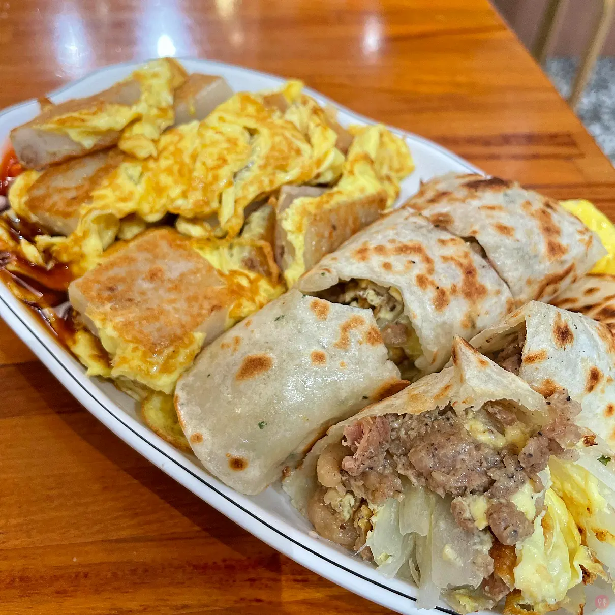 其實每次來,聽到點”淋蛋”的次數很高,為了不要每次都點一樣的,這次來試試這個點單率超高的餐,還有新菜醬燒豬肉蛋餅