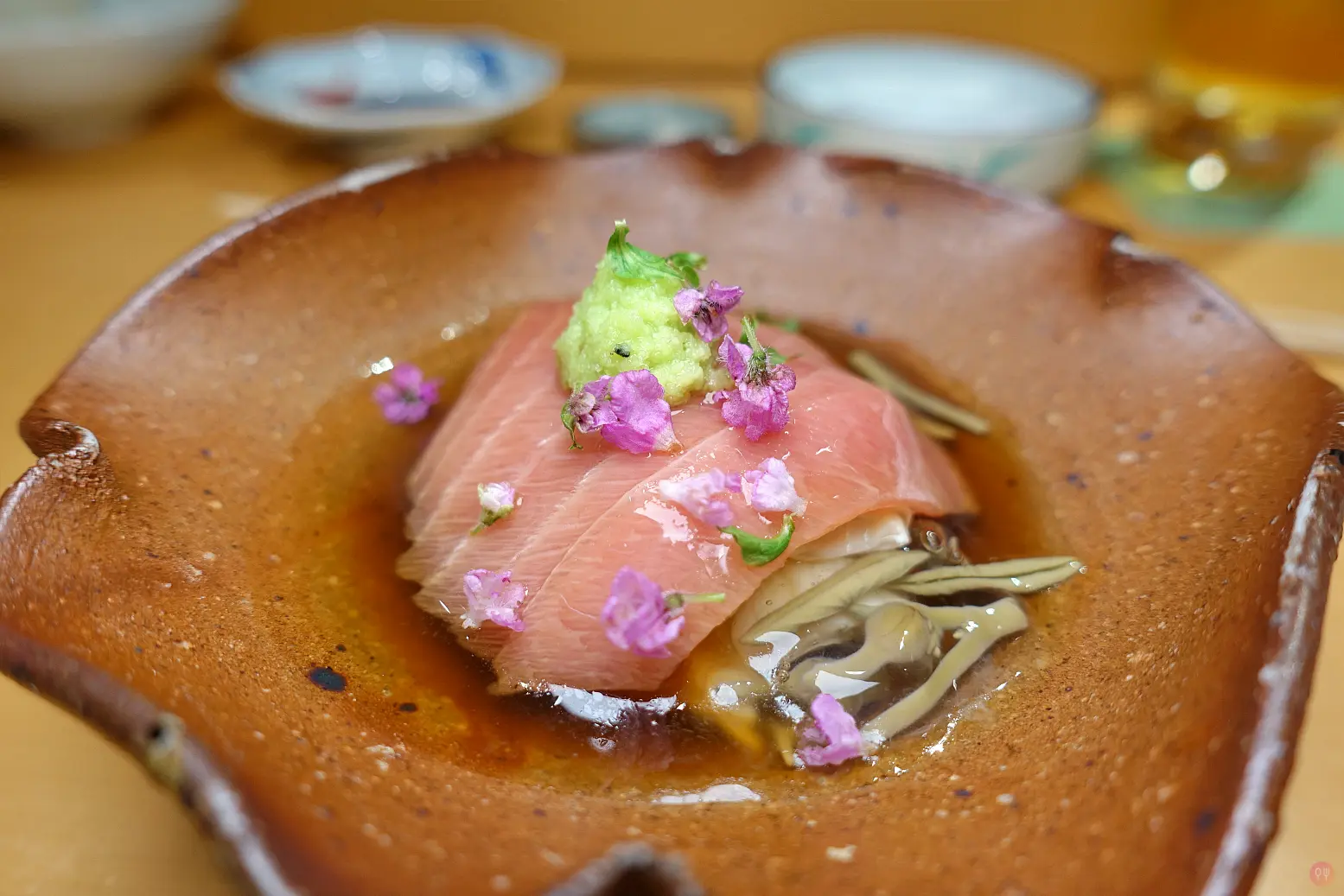 1. 鮪魚、湯葉、紫蘇花