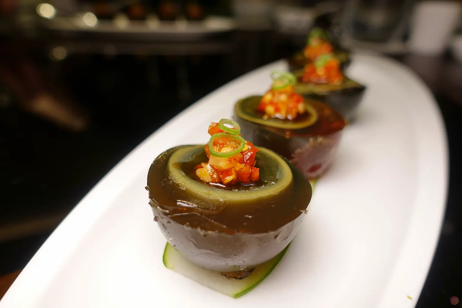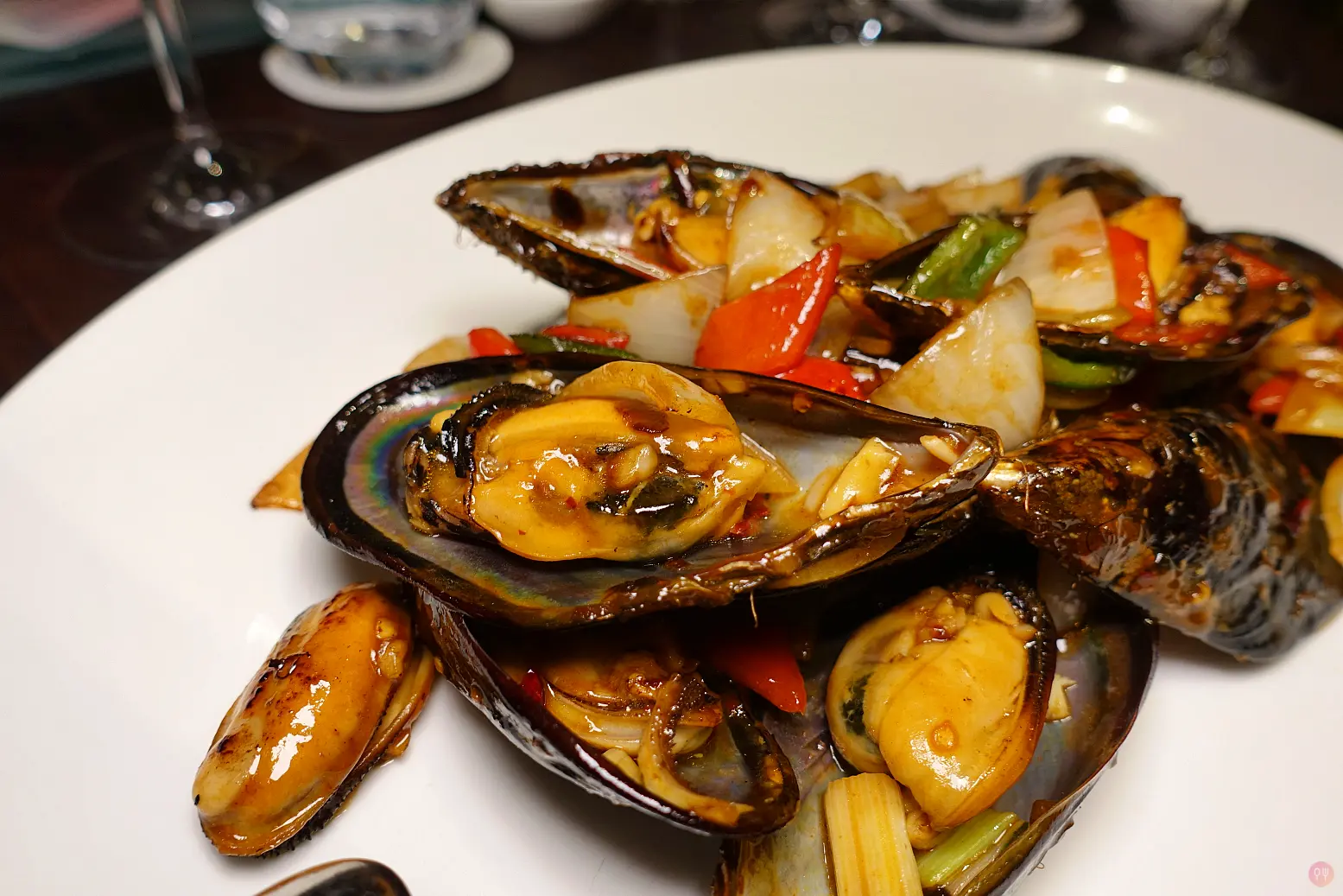 鄔師父還在試。最近的淡菜又大顆又肥美,多汁又鮮甜,但吃到的大都是西式醬汁,西式吃法。晶華軒用中式快炒,加上甜椒洋蔥,中式醬汁也是好棒