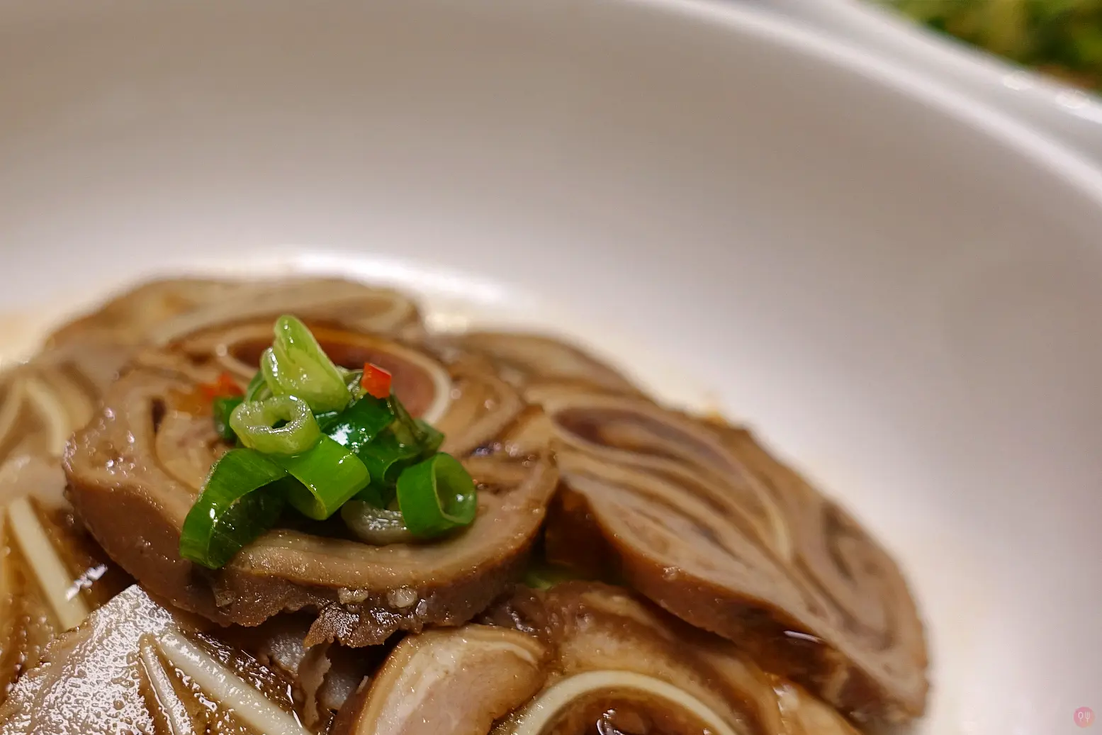 蔥麻和牛舌的辣醬+瑤柱金菇炆伊麵