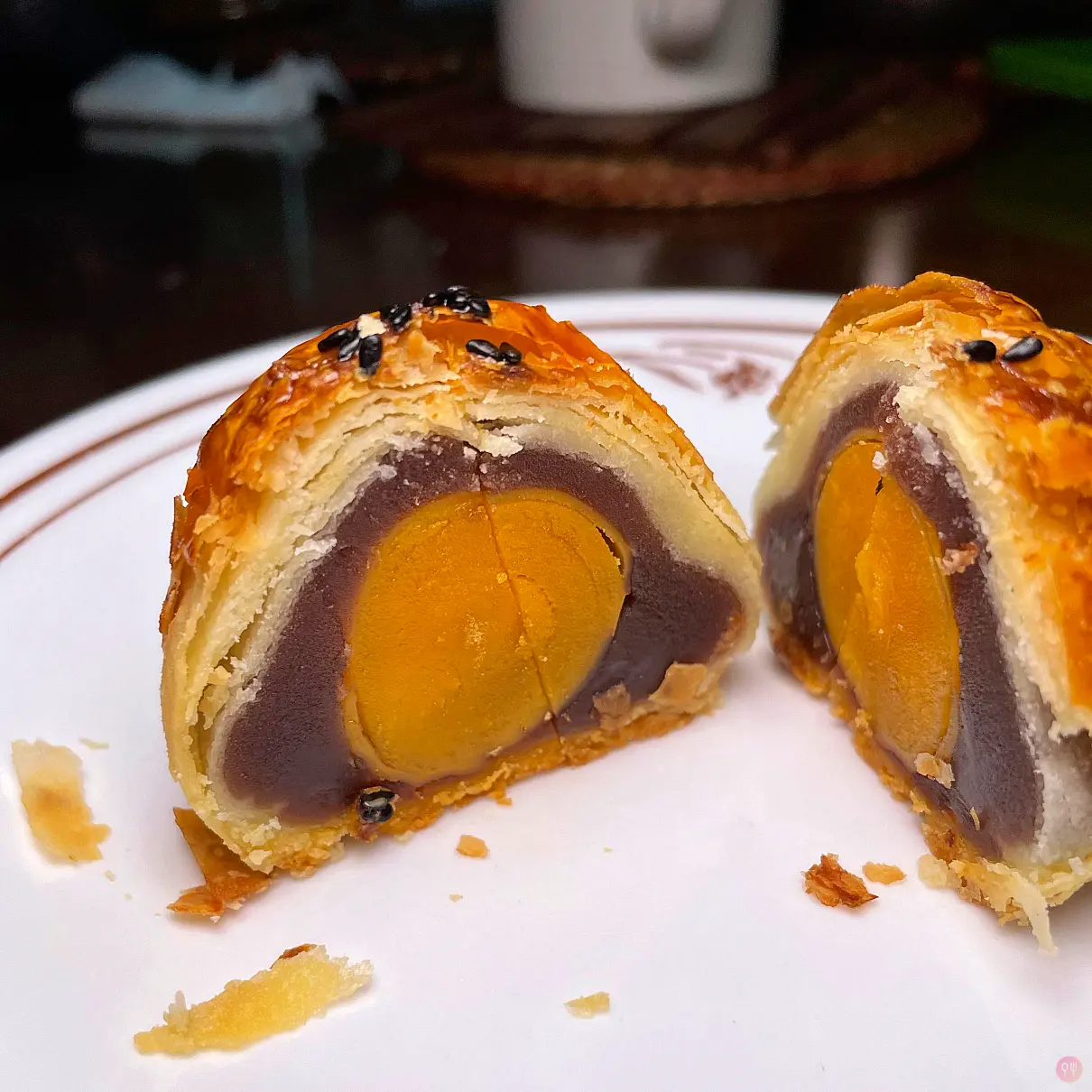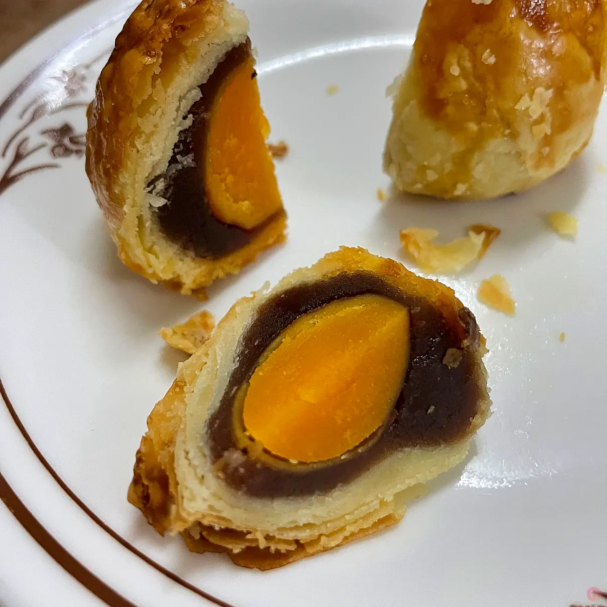 蛋黃酥是朋友一拿到後的隔天就交到我的手上,應該沒有放太久或保存問題吧? @_@”