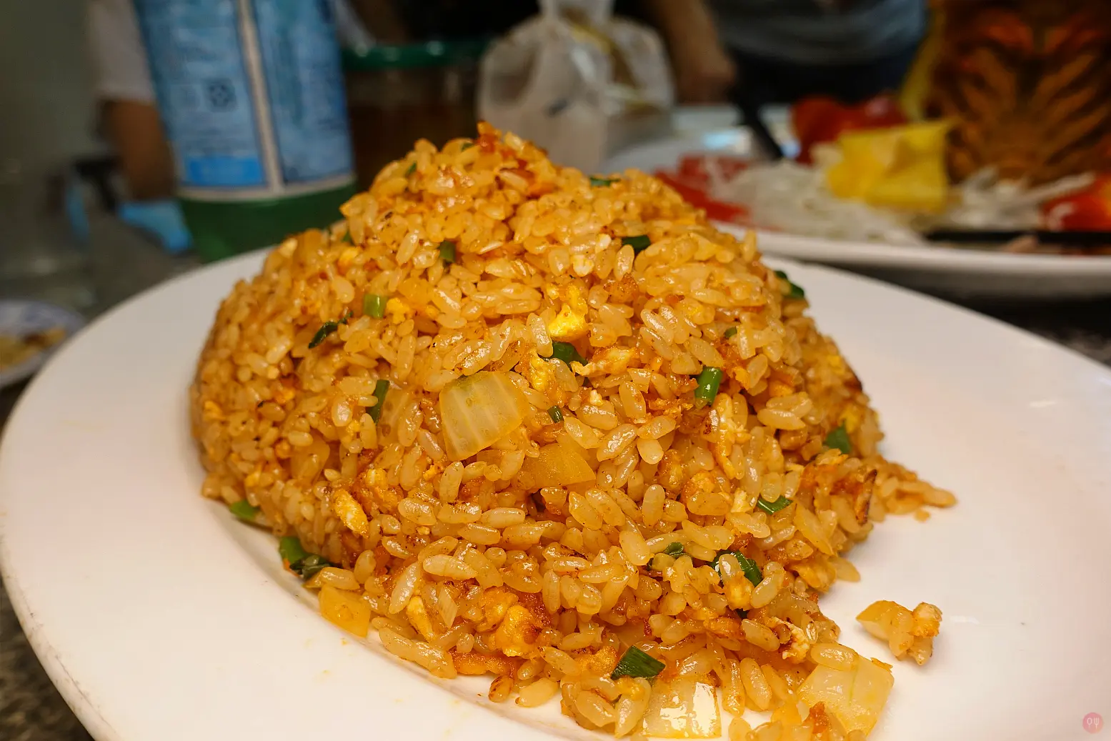 然後下面鋪的鳳梨跟洋蔥都好好吃!!!!!! ><” 會不會畫錯重點?