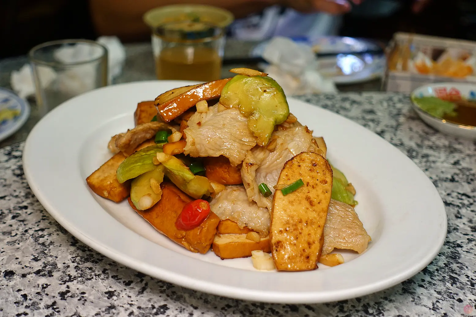 三層肉、閹雞、醬炒大卷、田雞腿、箭筍