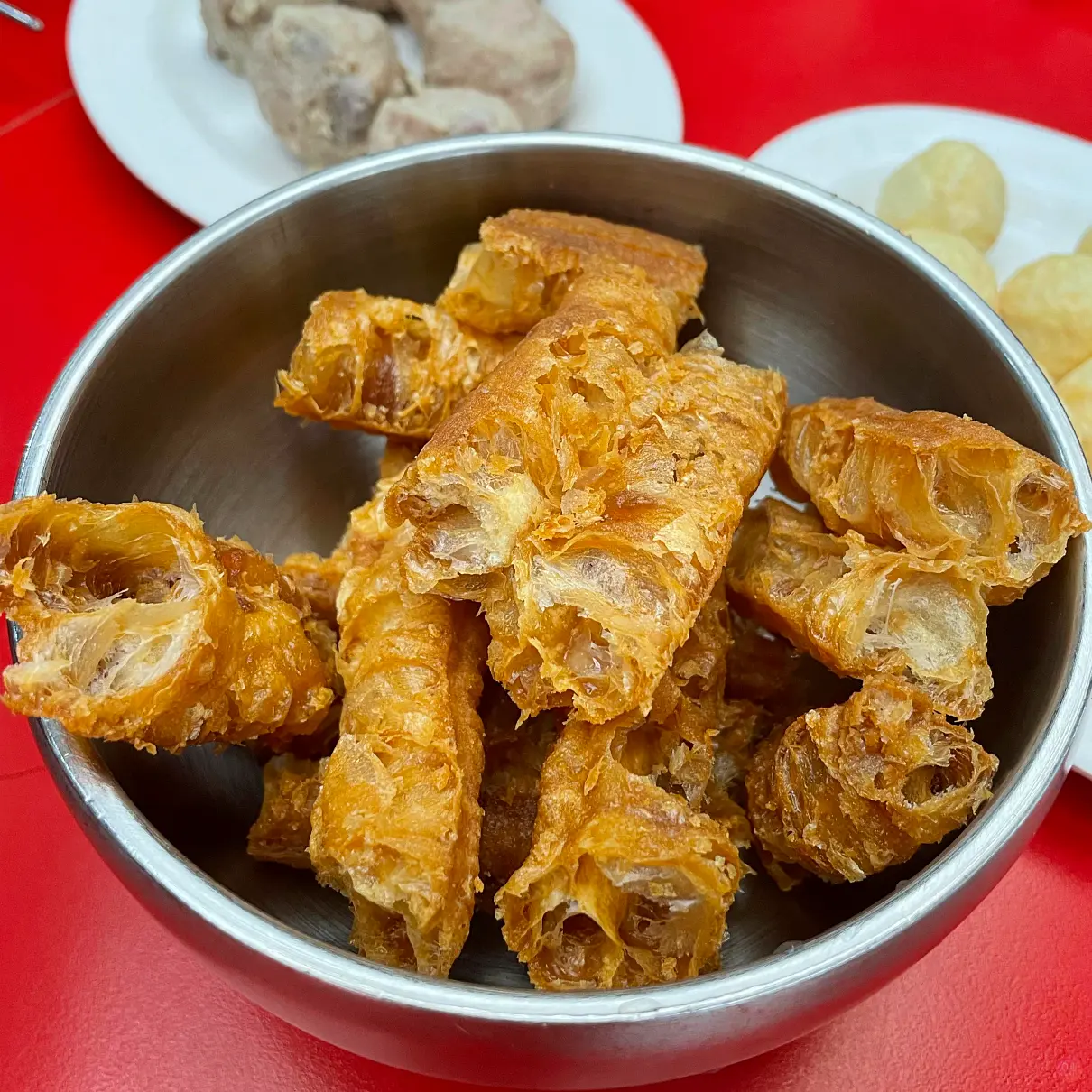 鴨血、無骨牛小排、芋頭丸、蝦滑