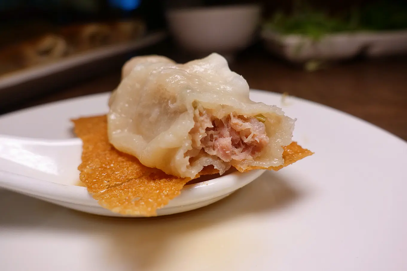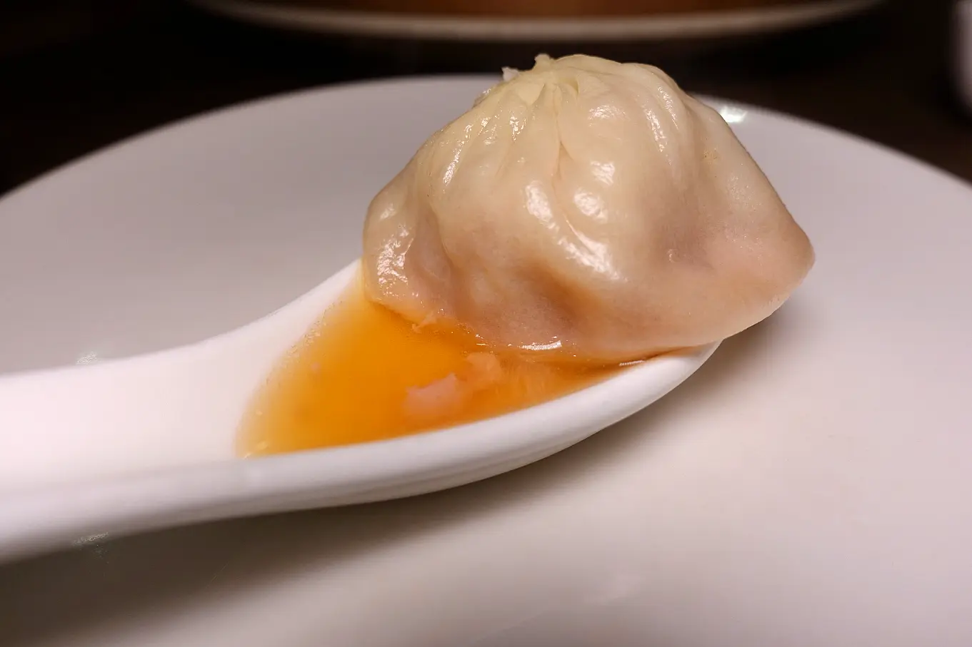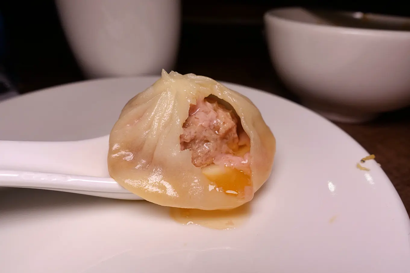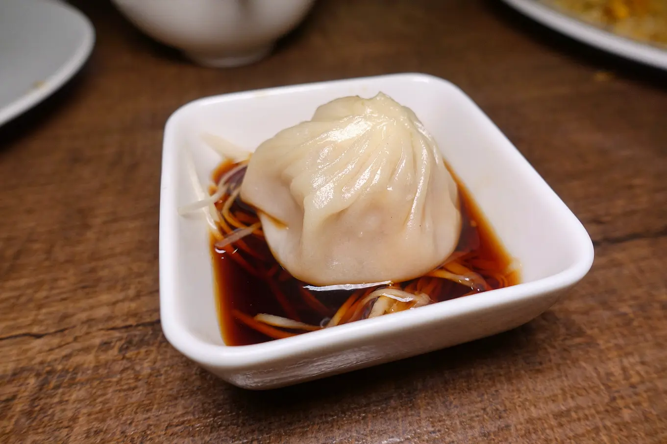 但是覺得皮比鼎泰豐厚了一點,所以在上面皺摺就會更厚了XD 有影響到口感(是因為要放更多湯汁怕破所以才要加厚?),配的薑絲也比鼎泰豐粗,是想要口感? 熱熱吃不錯吃,涼掉後還是鼎泰豐強