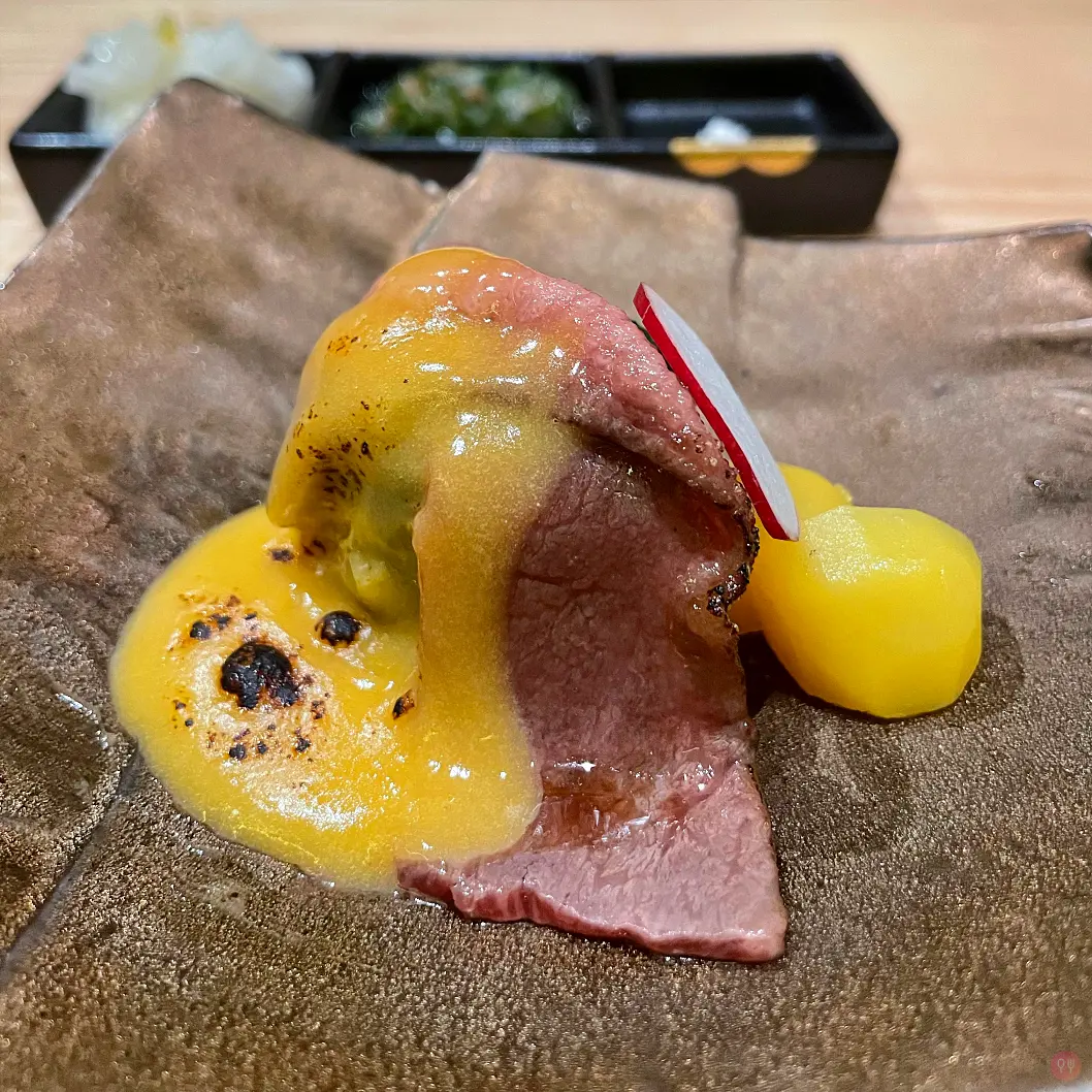 個人覺得如果A5和牛換其他美牛,可能更好吃。但,A5和牛是流量密碼 XD 一定得有 XD 然後在成本考良下,這個鹿耳島A5的品質????? 反正和牛水很深,有興趣的去聽我 podcast EP160 聊聊日本和牛的價差那來的? 如何上下其手?-> https://youtu.be/-xiXpHW7j6U