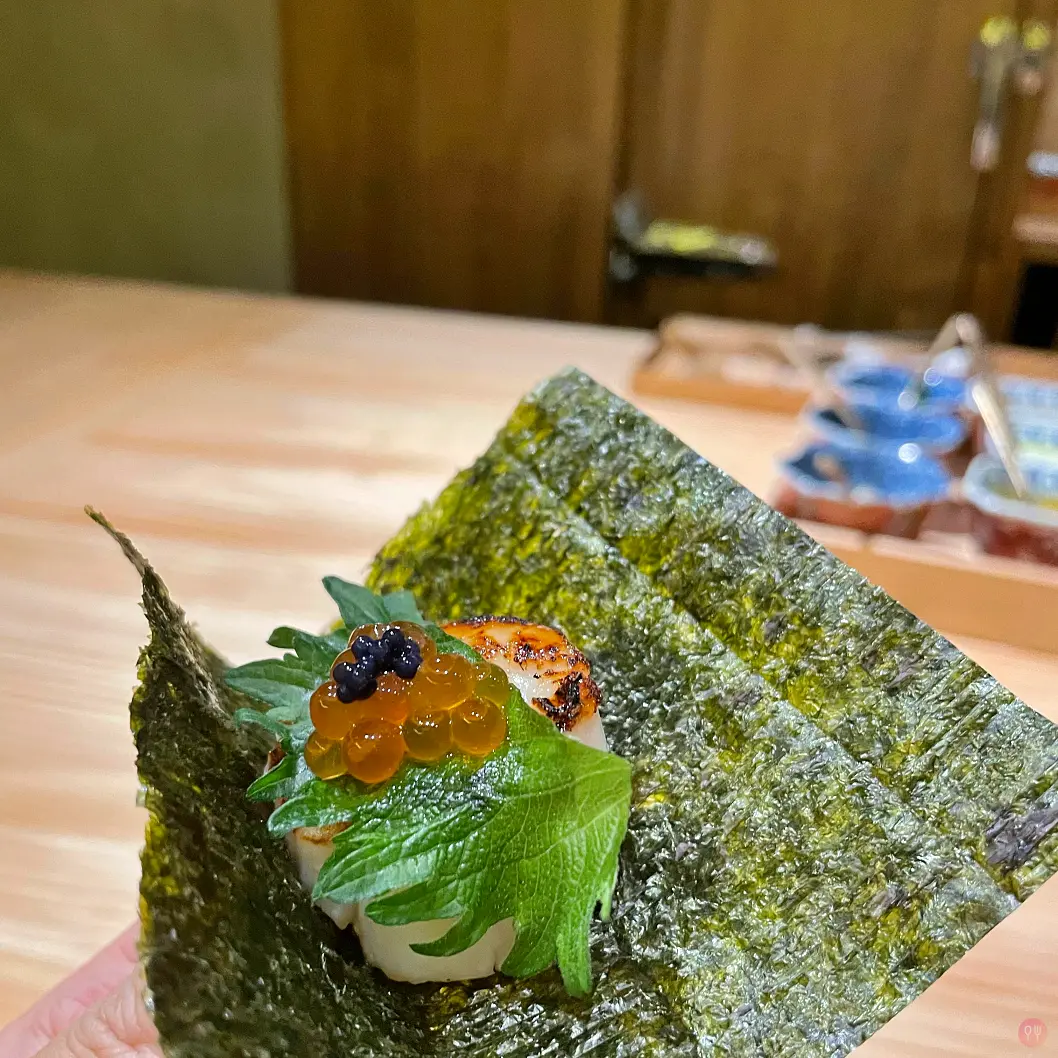 - 鱒魚卵干貝卷