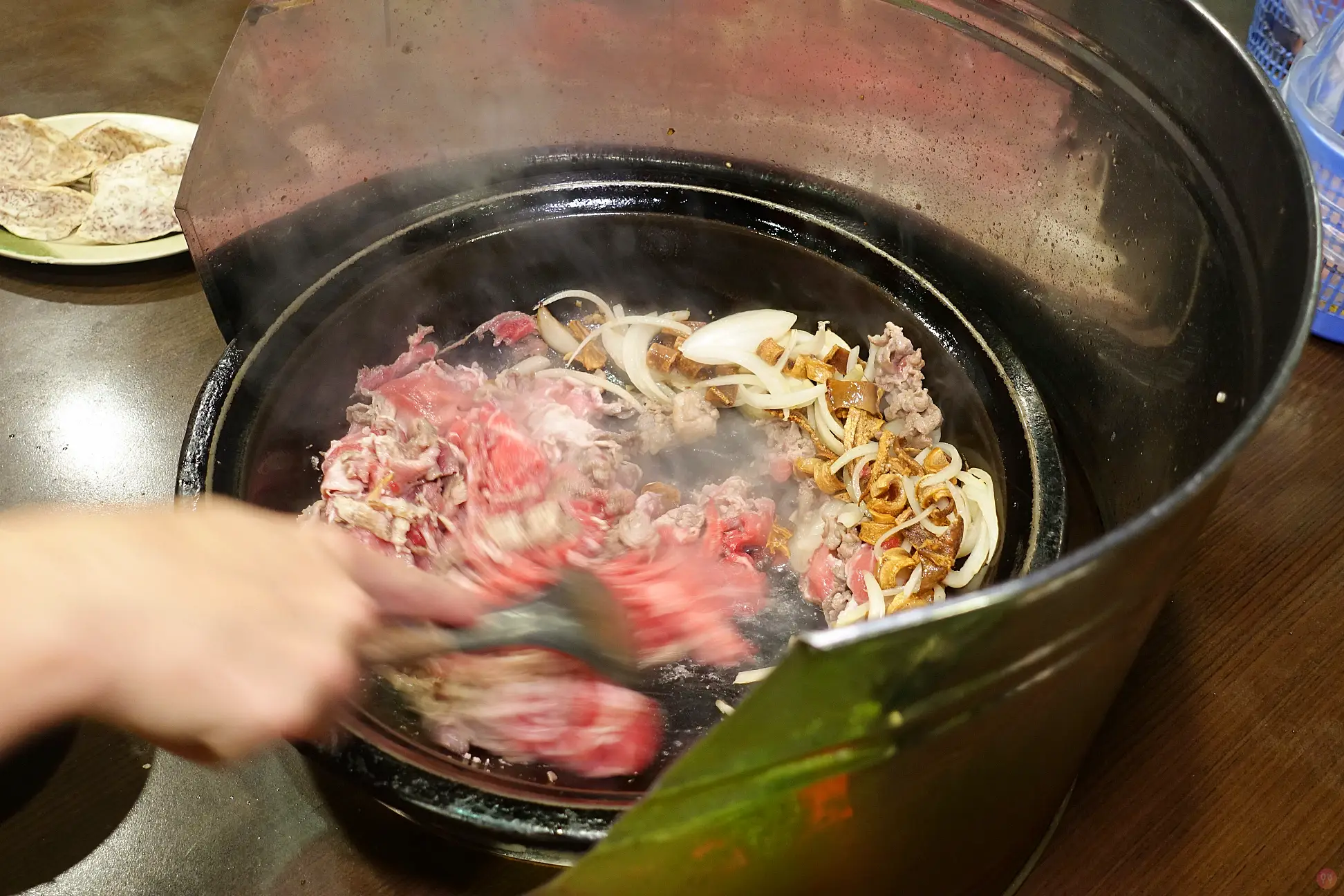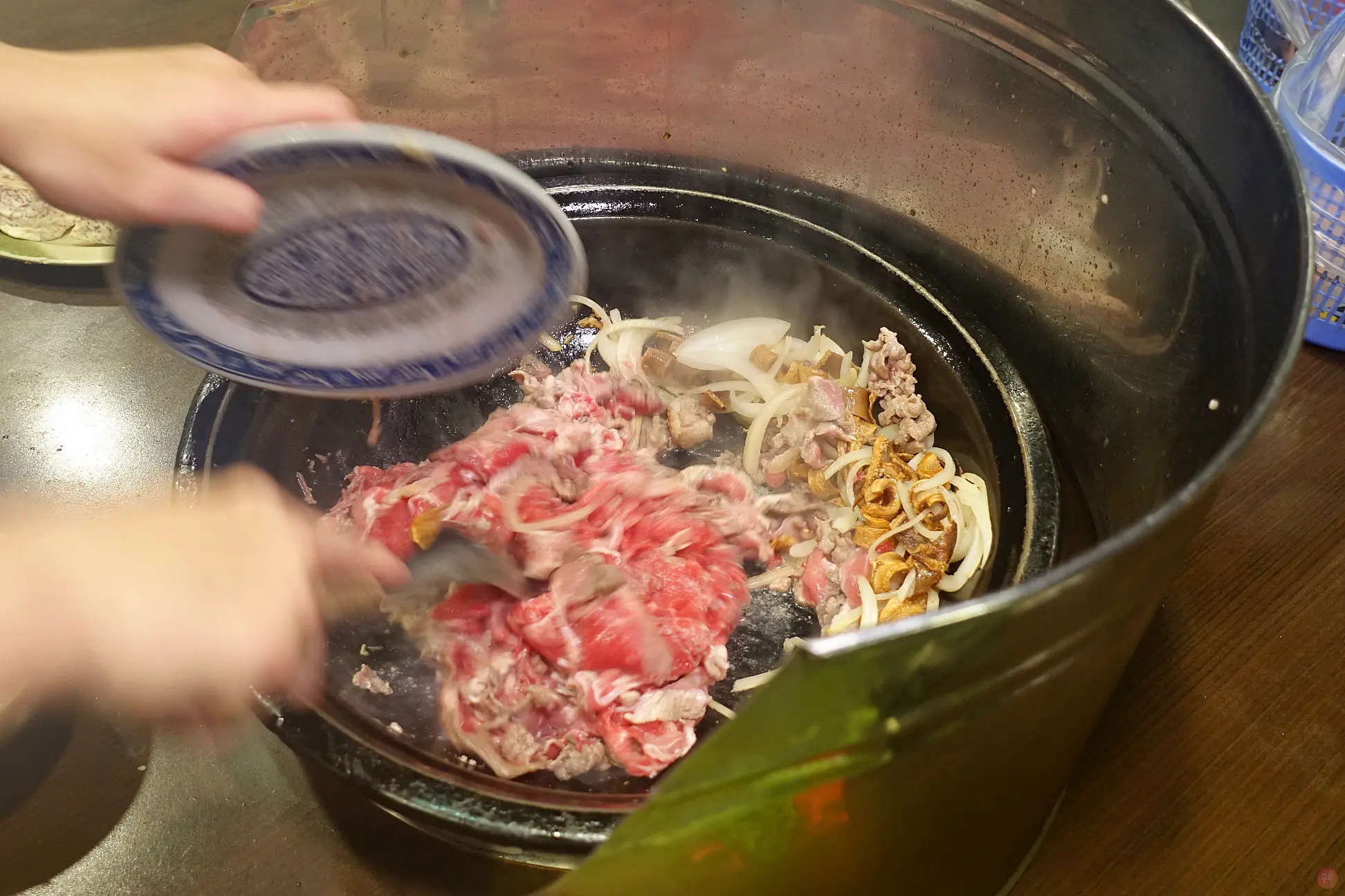 之後再加點的沒有爆香,差非常多,肉大概爆炒7分熟,之後火鍋再煮