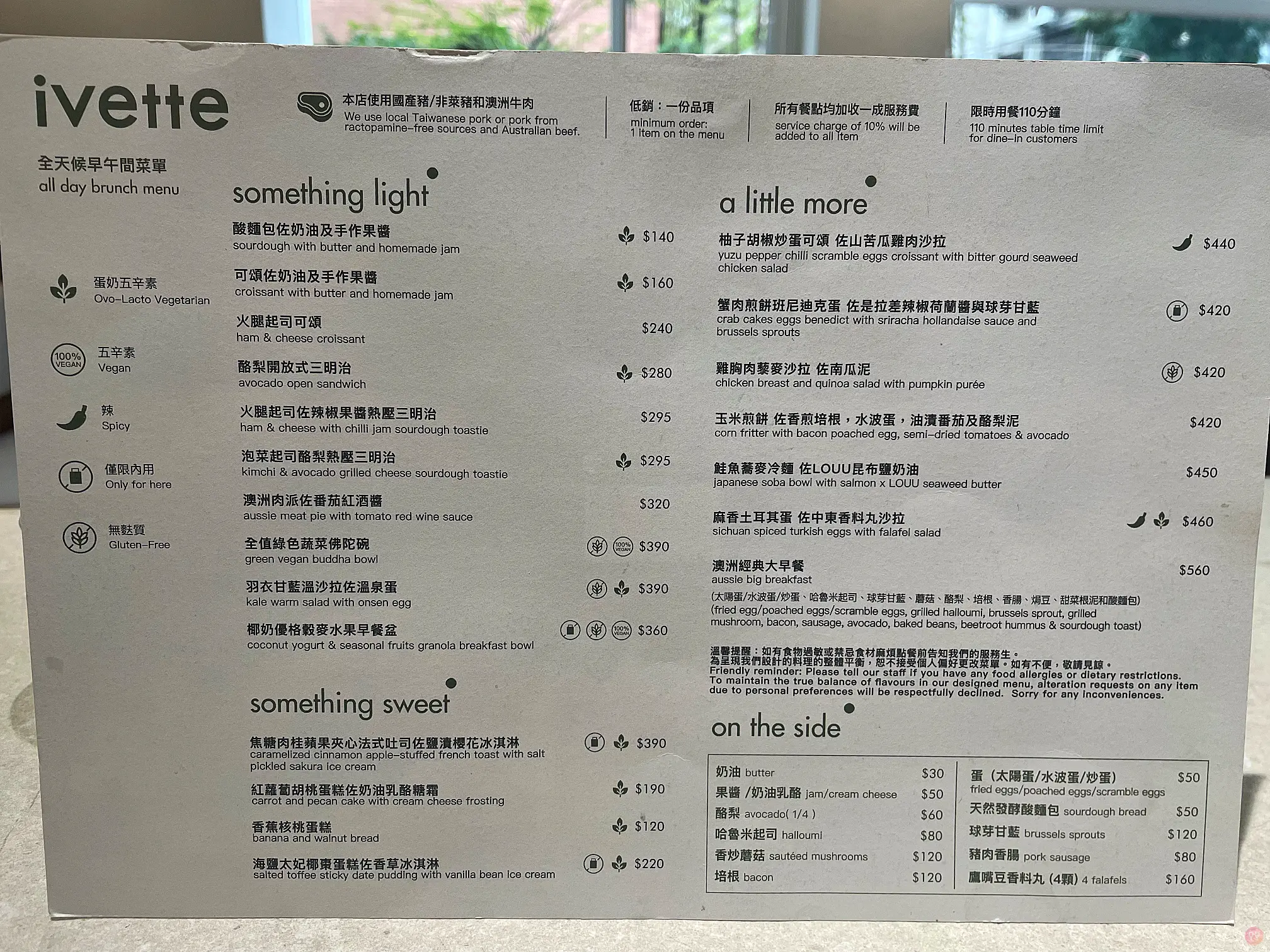 點餐方式是桌邊點餐,跟大部分其他間都需要去櫃台點單,先結帳不同。ivette 是後結帳