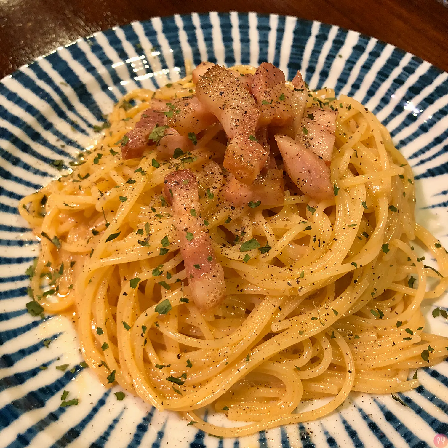 點了以前不會點的奶油醬油培根義大利麵,朋友推薦的,一吃覺得好感動