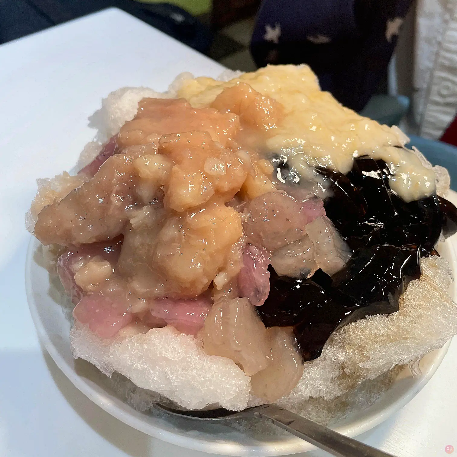 這次來想說試試不同的料,看到一白白的東西,一問之下才知道是麥片,自己煮的,要跟冰攪在一起吃,我聽了似懂非懂