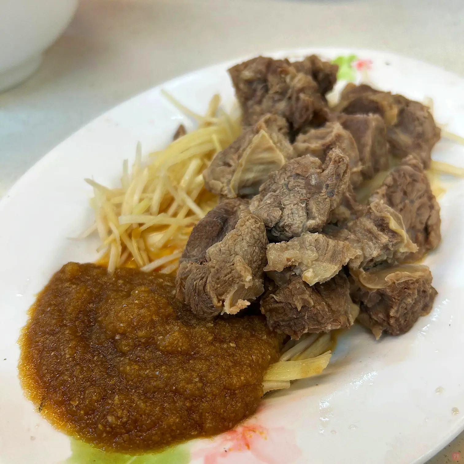 牛肉的部分切的是厚的,不知道是不是因為都沒有客人,太早來,所以湯太燙了,覺得牛肉燙得太熟,覺得有點老