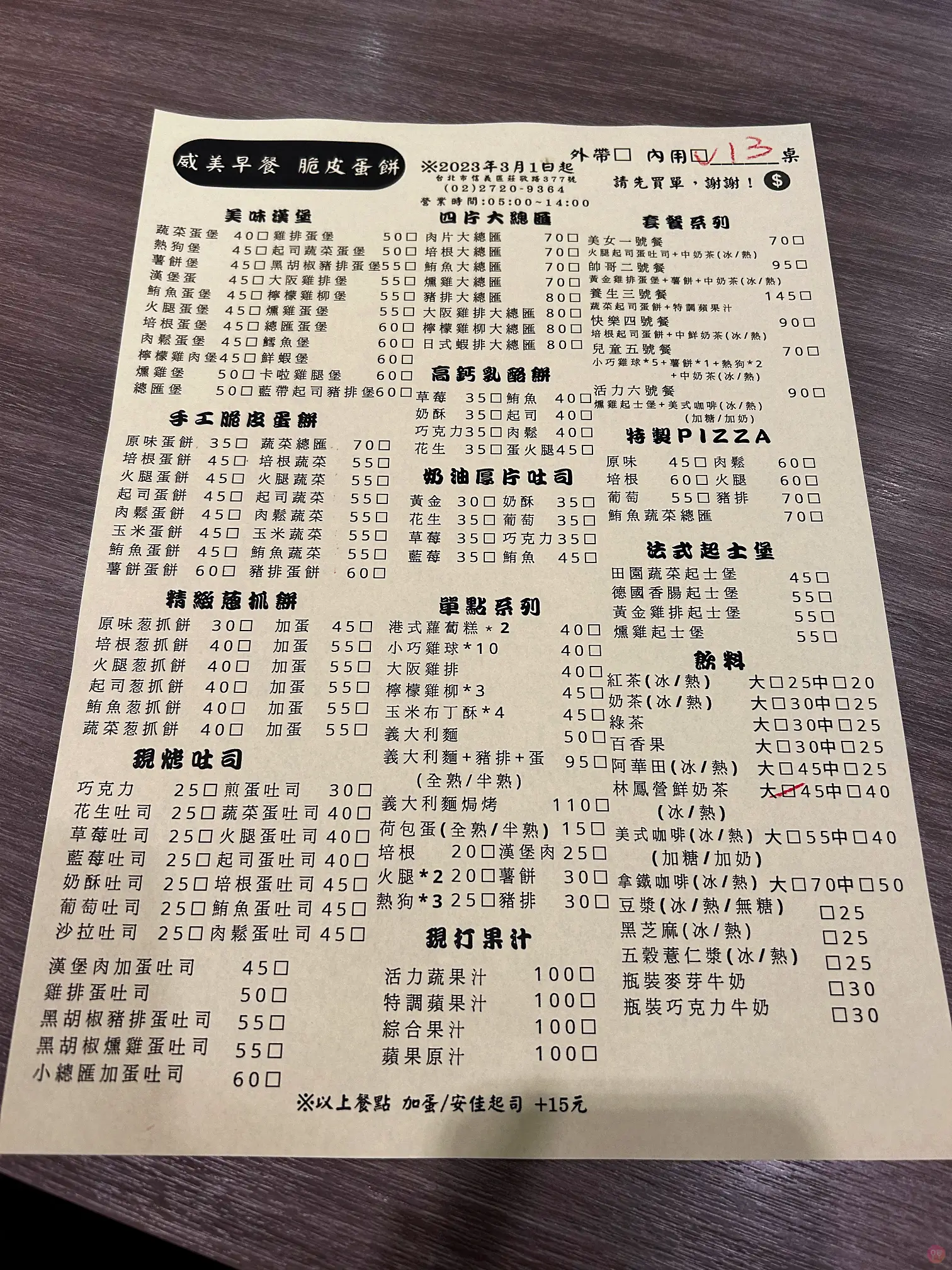 台北信義 威美早餐店 高分熱門脆皮好強的蛋餅台北-信義, 大台北地區 / 2023-06-28 / 台北, 吐司, 早餐, 蛋餅 台北信義 威美早餐店 高分熱門脆皮好強的蛋餅 Table of Contents Toggle 先給結論用餐體驗注意事項餐廳資訊用餐照片菜單 先給結論 蛋餅好好吃 用餐體驗 生意非常好的的早餐店,感覺有一大半的客源來自學生,但是他們蛋餅真的蠻強的 蛋餅屬於脆皮,火候真的還不錯,內饀也有水準,建議直接在店內吃,不要外帶,不然餅皮的美味度會大打折扣 注意事項 先結帳 生意很好,用完餐可以快快讓座 餐廳資訊 110台北市信義區莊敬路377號 5am~2pm 0227209364 人均: 150 用餐照片 起司蛋餅 45元 起司蛋餅 45元 草莓吐司 25元 菜單 Post Views: 405