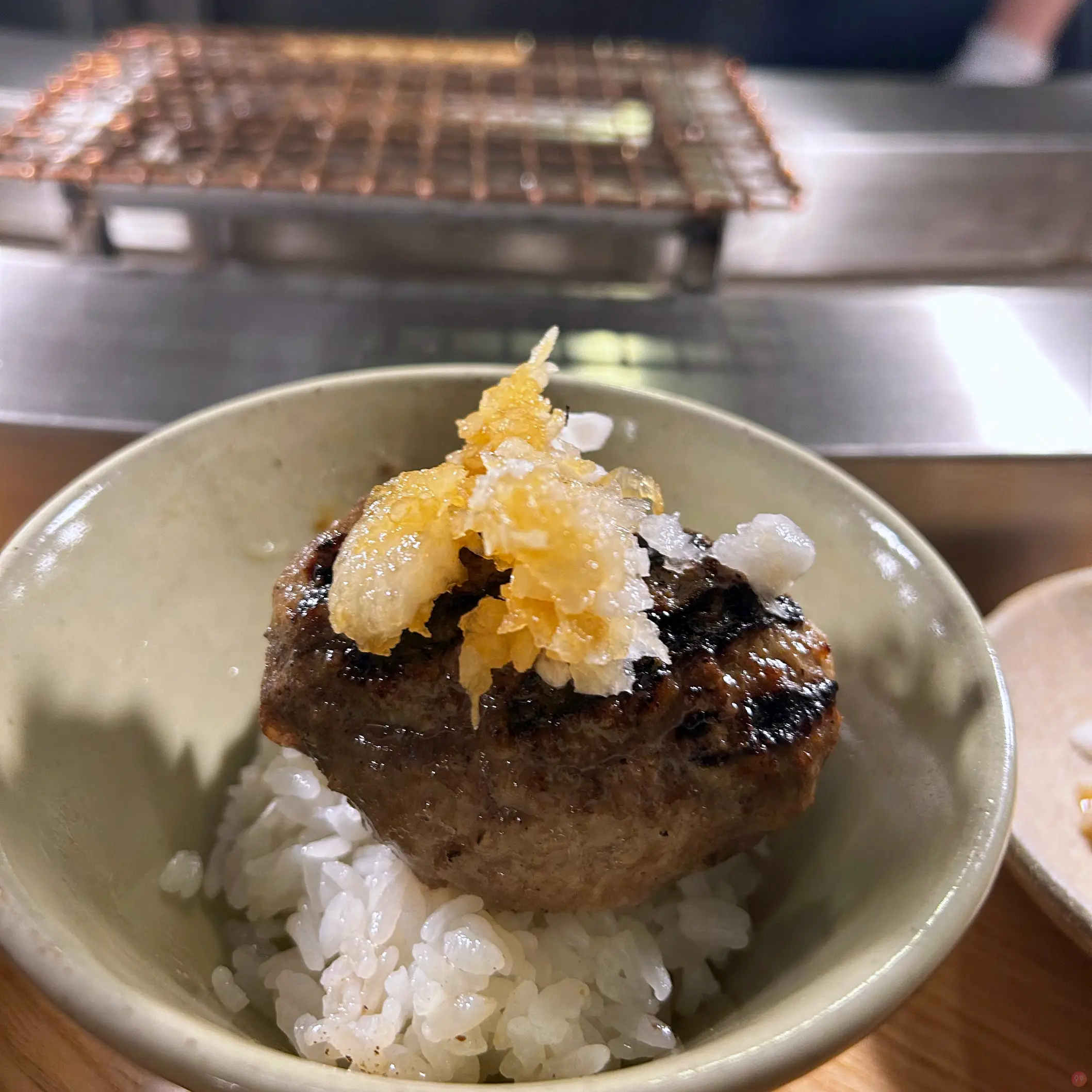 一共會給三顆漢堡排,一顆吃原味,一顆加蘿蔔絲佐柚子醬,一顆加生蛋