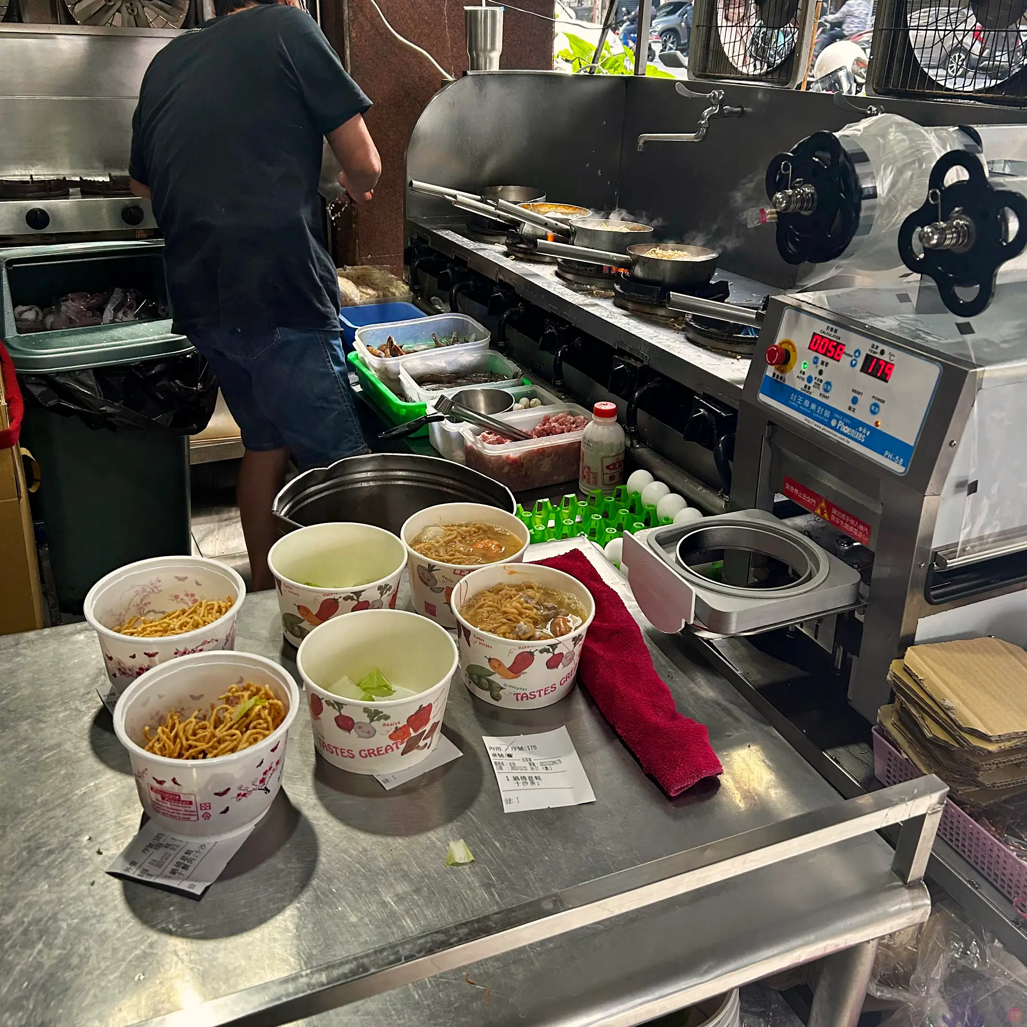店面一整個就很老店,前面一堆在煮的鍋燒意麵(不是漢堡店嗎?)