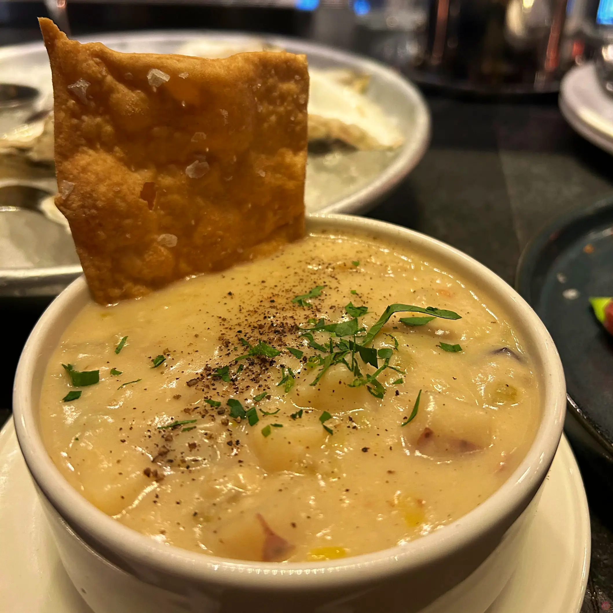 我只點了海鮮,然後加了他們招牌巧達湯