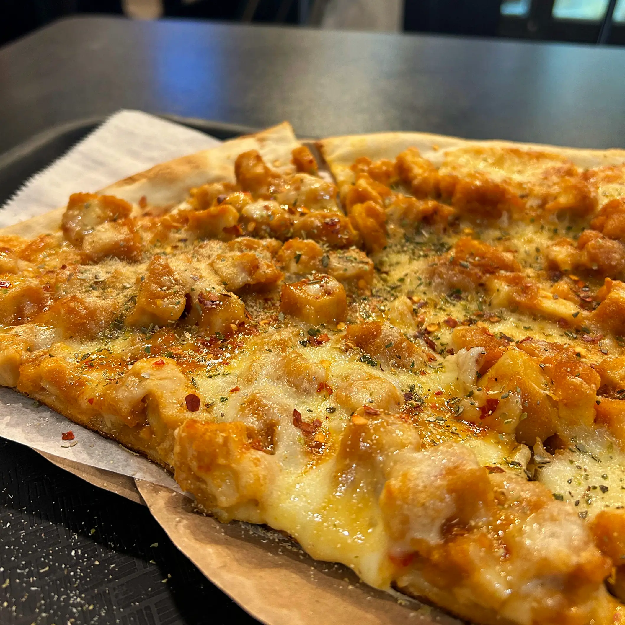 拿到後調味料就自己灑,主要有起司粉,蘿勒粉,大蒜粉,辣椒粉