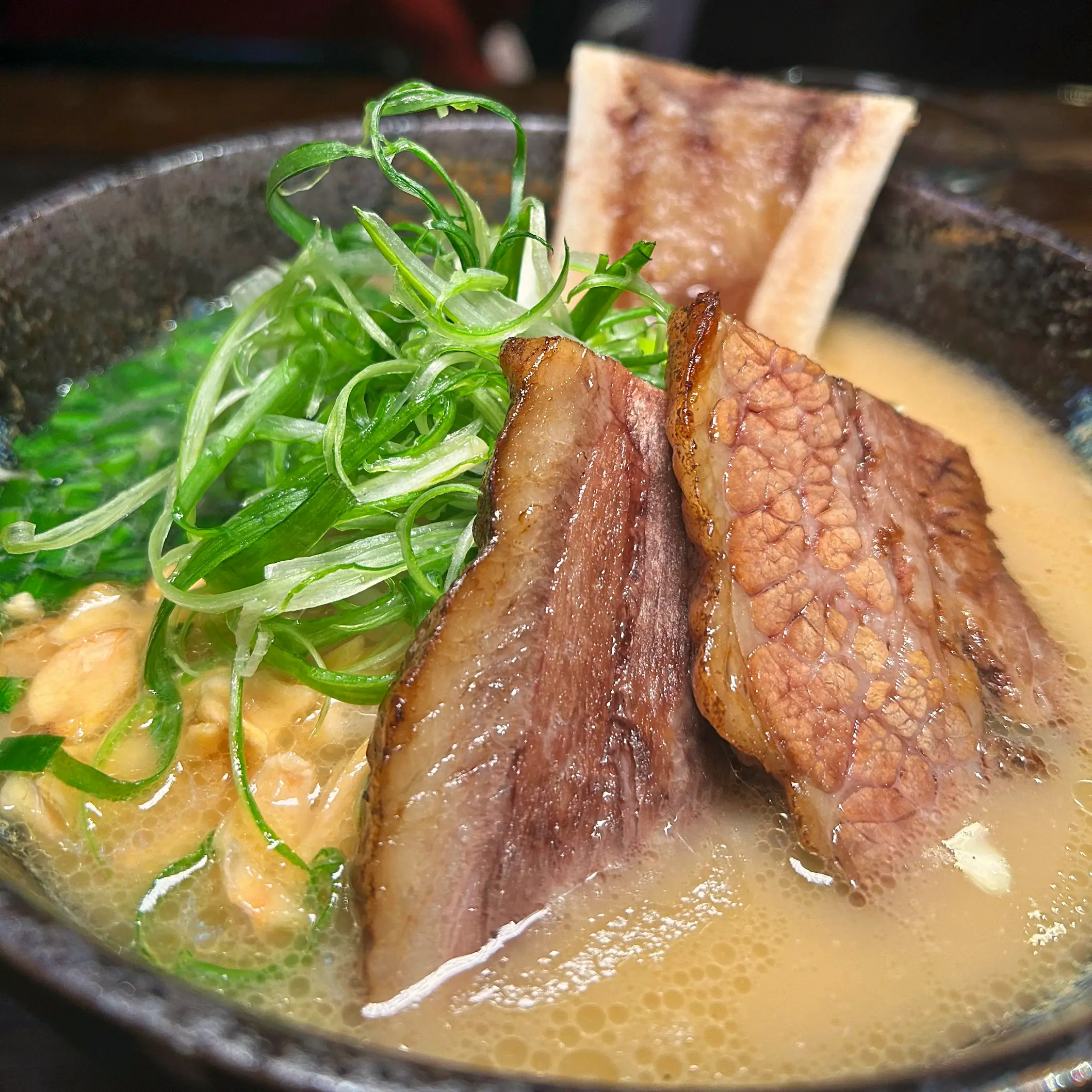 叉燒不錯吃,軟嫩適中又有味。大骨的骨髓上有鹽,刮下來也好吃~