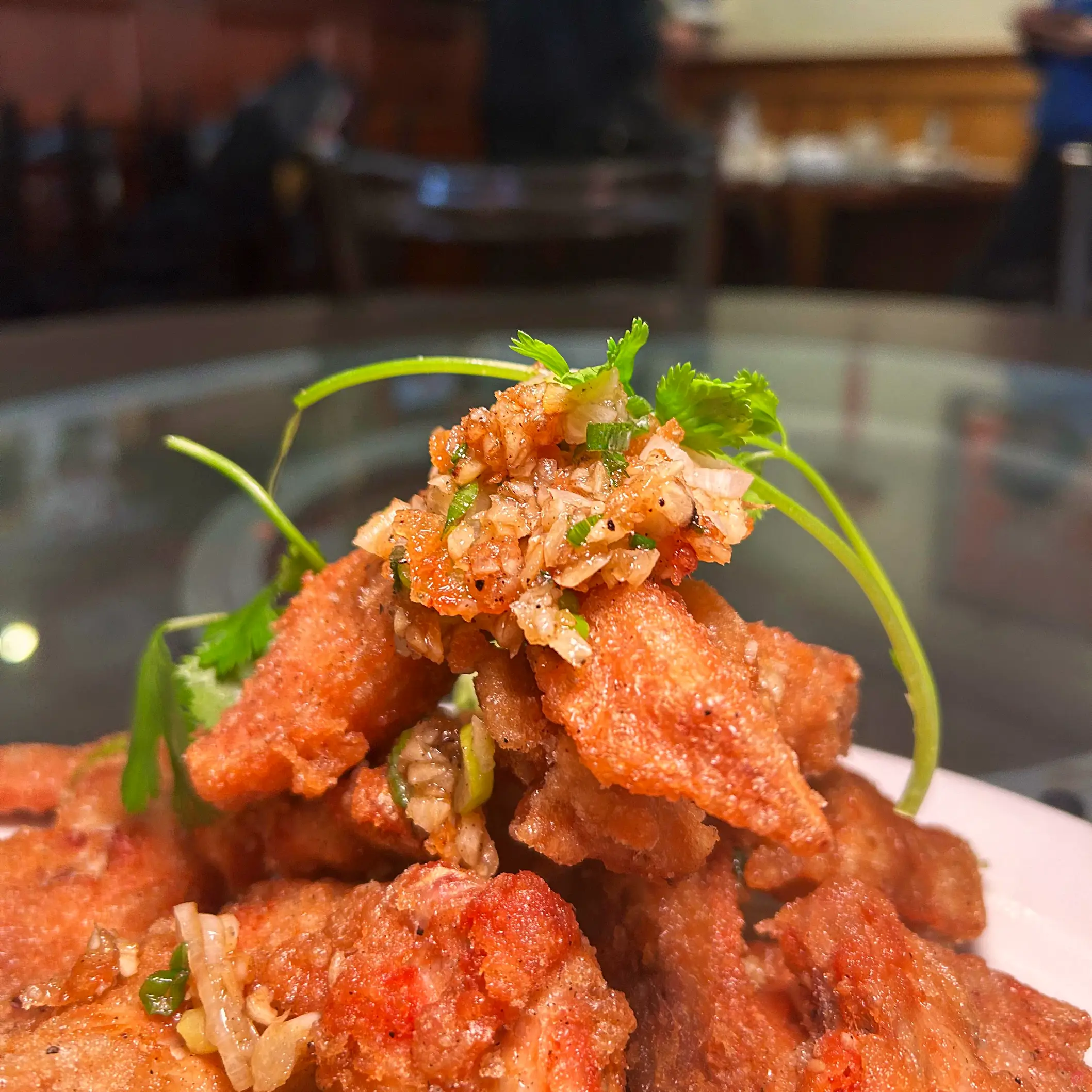 雞翅真的不錯吃,麵衣不薄不厚,有一點點點甜,裡面肉不柴,也不會太油,再灑上炒過的蒜未,完全對味