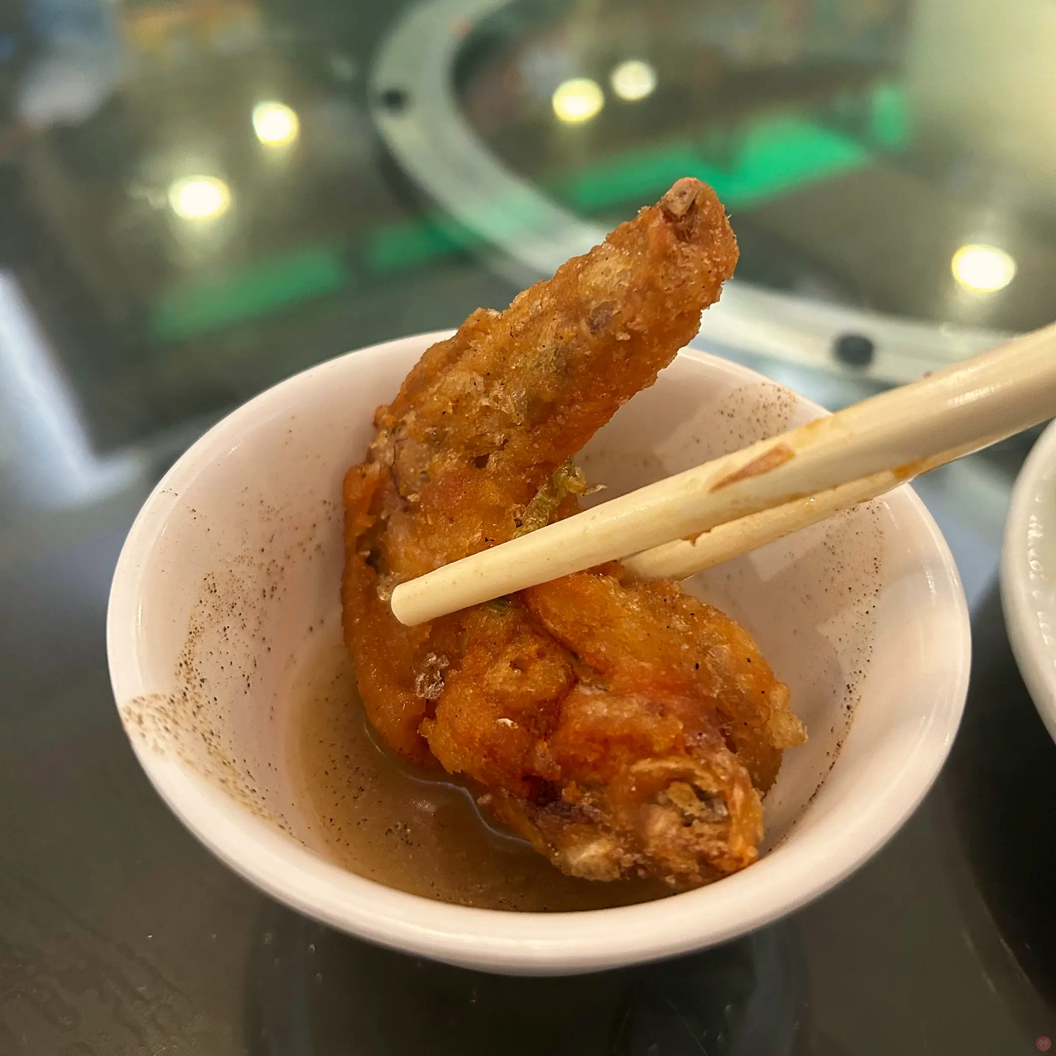 另外再附一碗很特別的沾醬,看起來應該是檸檬汁加胡椒,沒有這樣加過。整道菜真的是很優秀