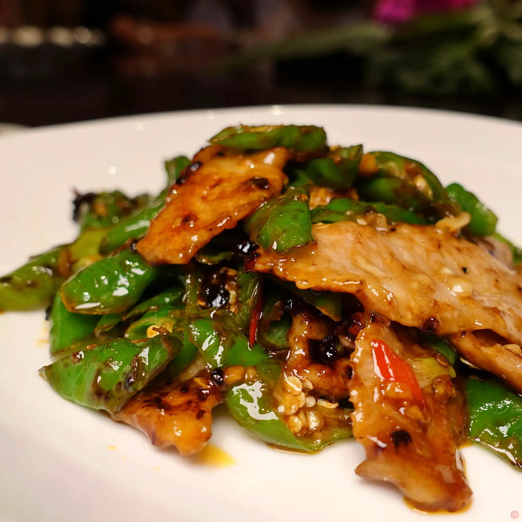 • 糯米椒炒松阪豬 蒜炒小豆苗